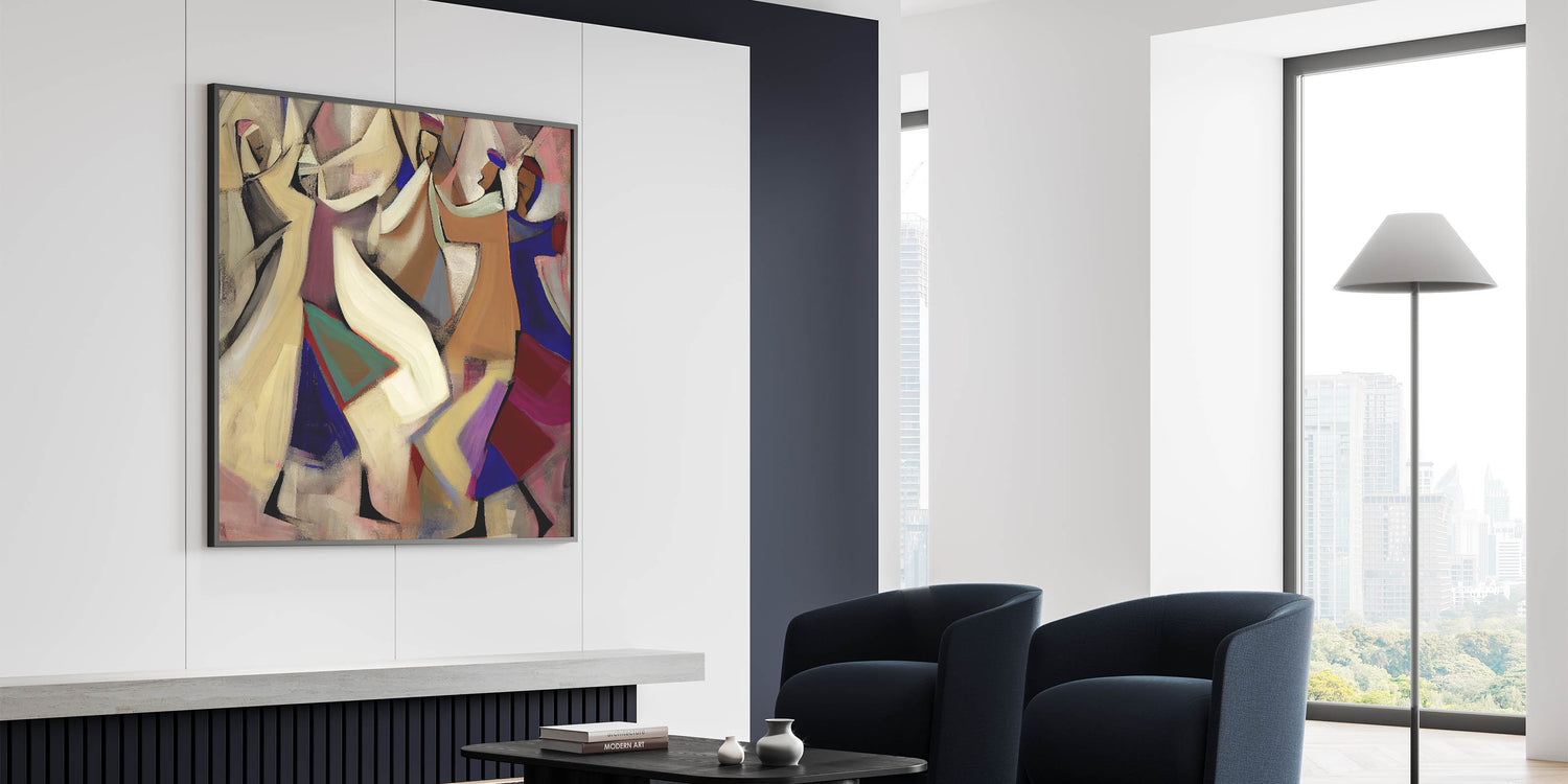 Ideal for those who appreciate unique figurative art, this abstract depiction of human figures brings life and character to any room. Its soothing color palette and expressive style make it a captivating centerpiece that invites viewers into its artistic narrative.