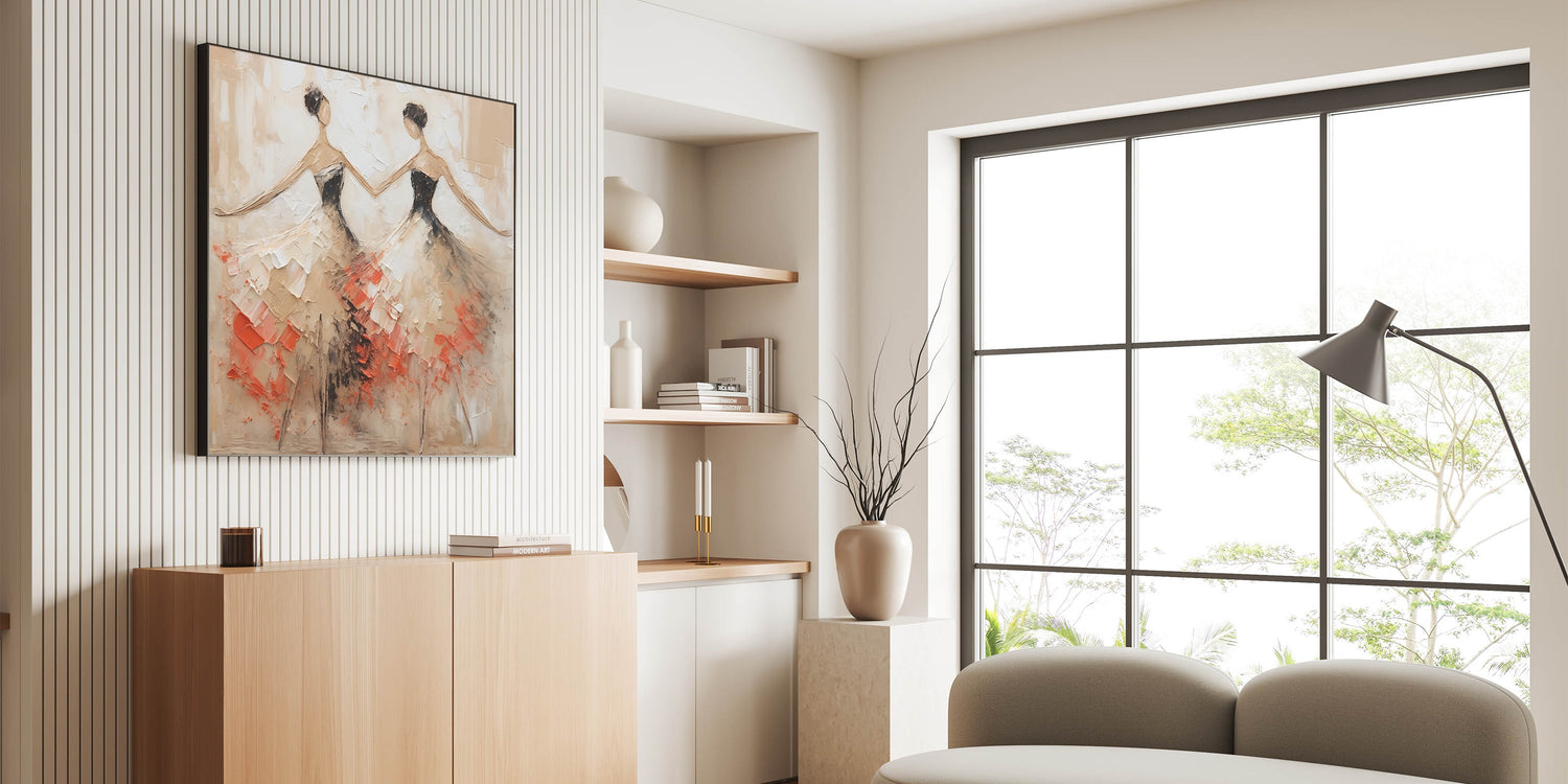 This beautiful piece of contemporary figurative wall art is ideal for living rooms, bedrooms, or any space where you want to create a sense of movement and grace. Its timeless design and vibrant colors make it a versatile addition to any decor style.