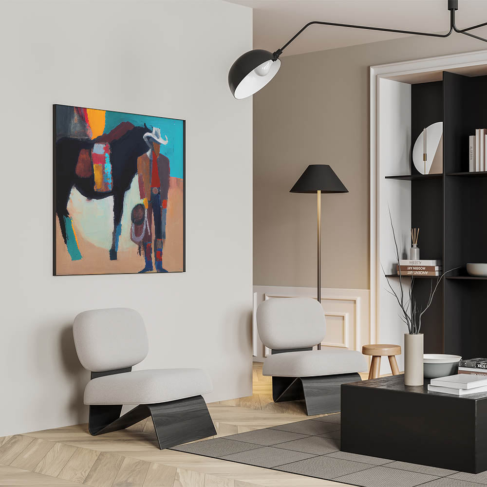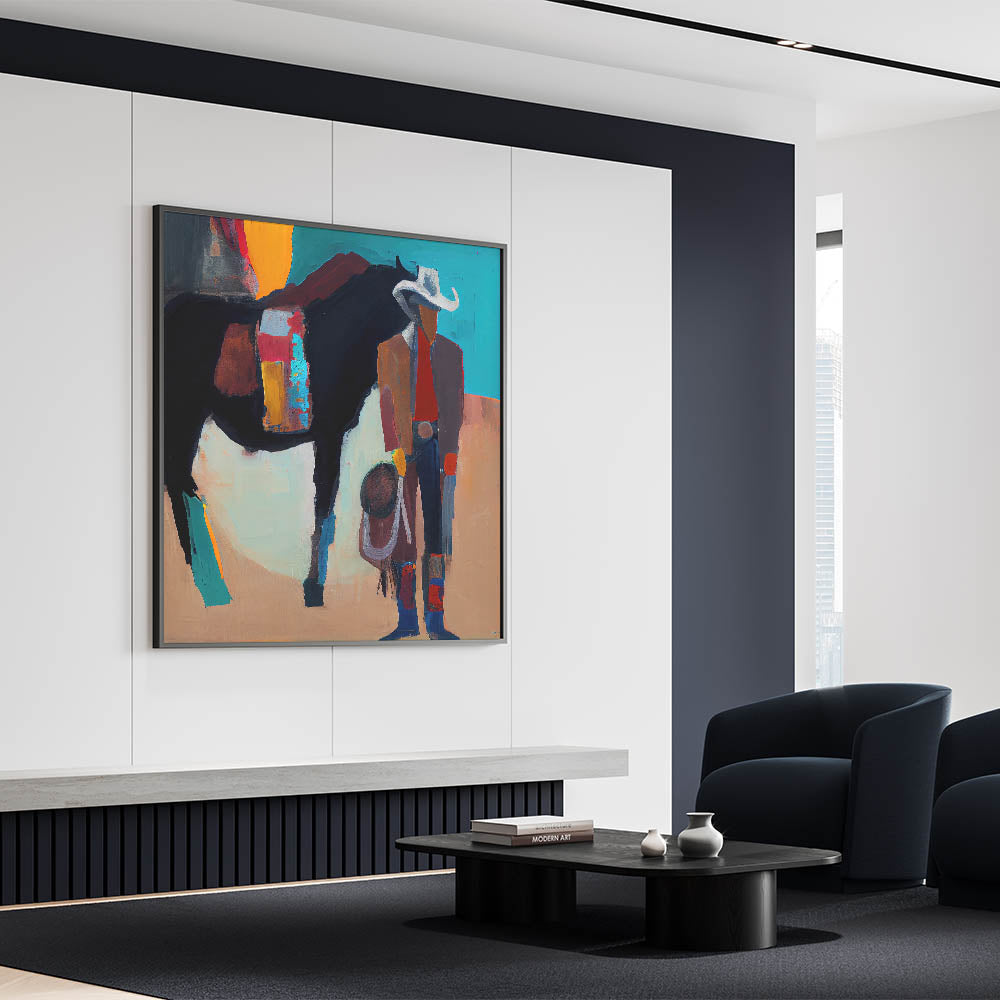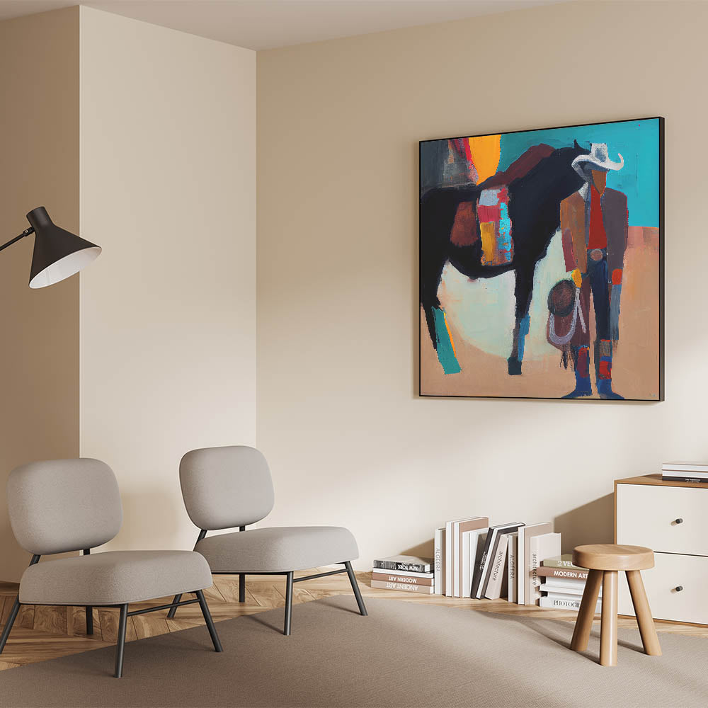Perfect for living rooms, studies, or any space that celebrates Western style, this artwork serves as a captivating focal point. With its dynamic colors and modern approach, it brings both energy and sophistication to your walls.