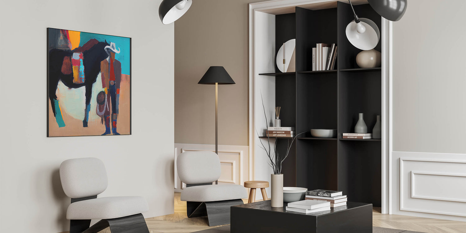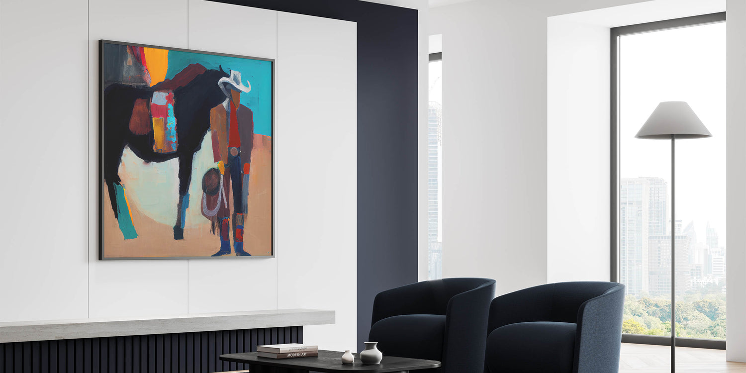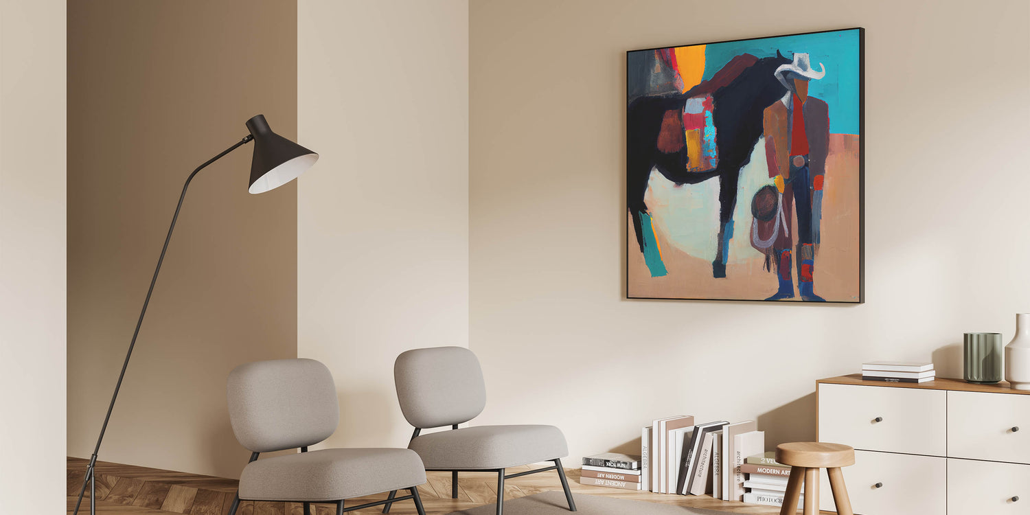 Perfect for living rooms, studies, or any space that celebrates Western style, this artwork serves as a captivating focal point. With its dynamic colors and modern approach, it brings both energy and sophistication to your walls.