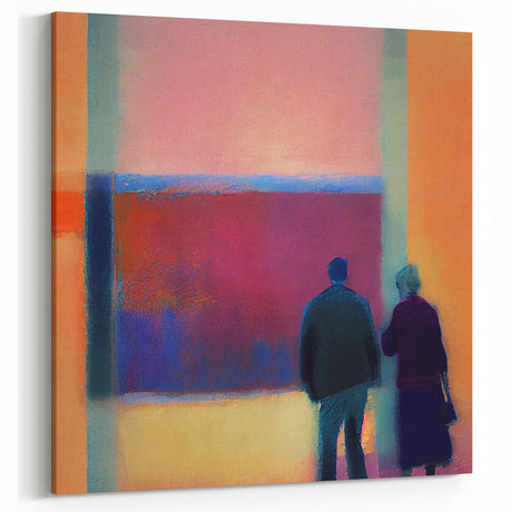 • Abstract minimalist wall art stretched on canvas displaying soft pastel colors and geometric shapes, ideal for modern home decor settings.