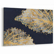 Abstract Golden Leaf Veins on Navy Background - Modern Canvas Art