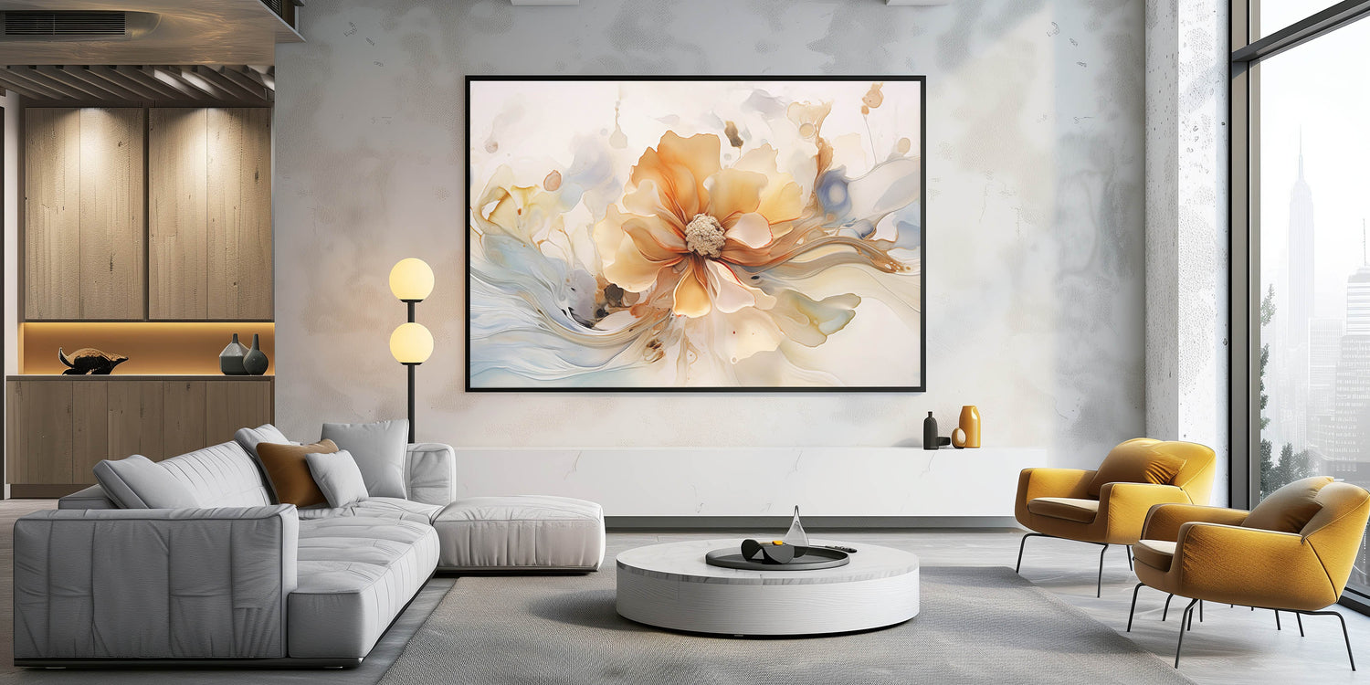 This unique floral abstract art piece brings a serene and sophisticated touch to any interior decor. The soft colors and fluid design create a calming atmosphere, making it perfect for spaces where relaxation and peace are desired. Whether you're looking to update your home or office, this beautiful abstract flower art will add a refined and artistic touch to your environment.