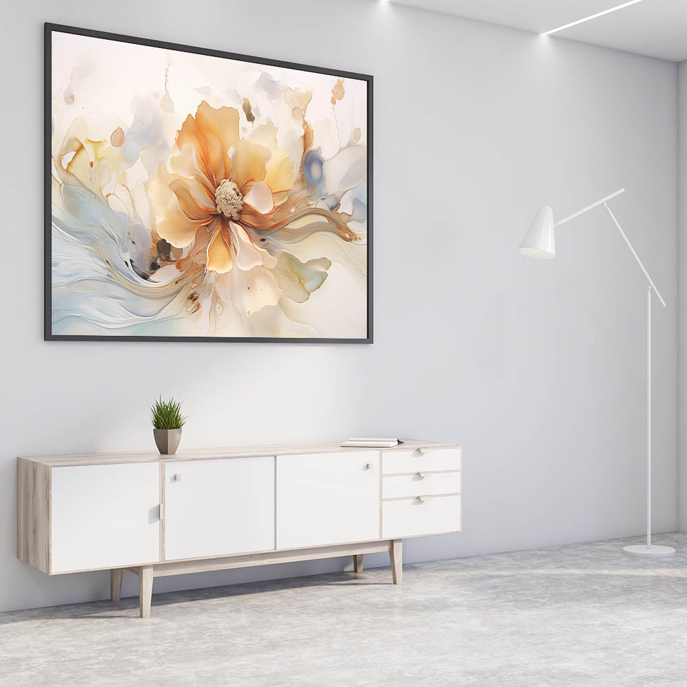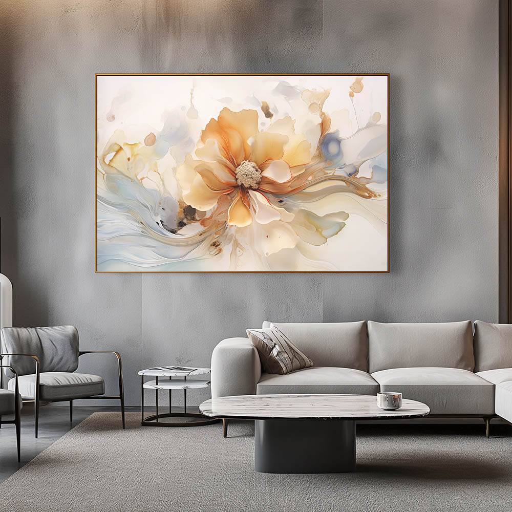 Transform your living space with the delicate beauty of our peach and cream floral canvas, a captivating piece of abstract botanical art. This artwork features a soft and ethereal depiction of a flower, with gentle hues of peach and cream that evoke a sense of tranquility and elegance.