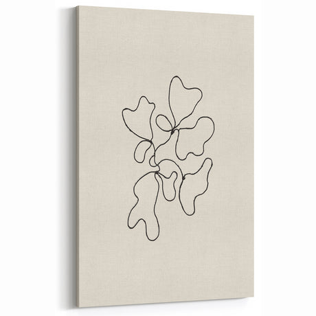 • Stretched canvas wall art showcasing an abstract minimalist design in soft muted tones, elegantly framed for a modern aesthetic, perfect for contemporary decor.