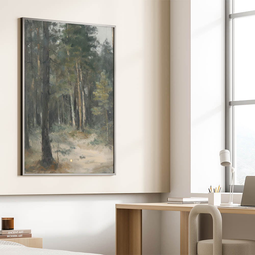 Immerse yourself in nature with this captivating Abstract Forest Landscape. Featuring a serene depiction of towering trees and a soft interplay of green and earthy tones, this artwork brings the tranquility of the forest into your home. Its textured brushstrokes and muted palette evoke a sense of calm, making it a perfect fit for contemporary, rustic, or nature-inspired decor.