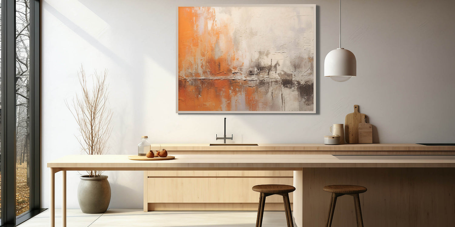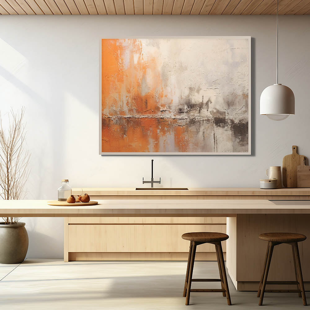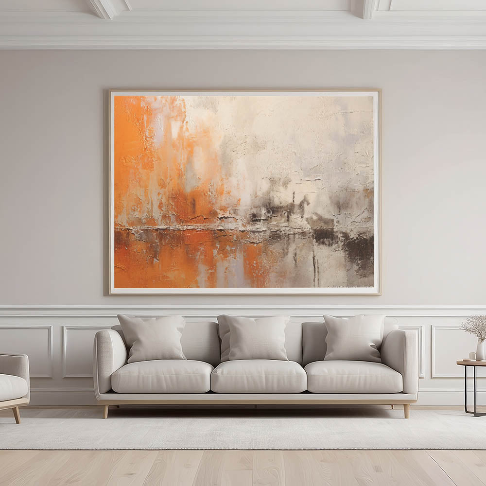 Elevate your space with this dynamic abstract line art featuring vibrant orange and earthy tones. The bold brush strokes create a sense of movement and texture, blending warm orange with creamy beige and deep brown hues. This striking composition is perfect for adding a pop of color to any room while maintaining a refined, contemporary aesthetic.