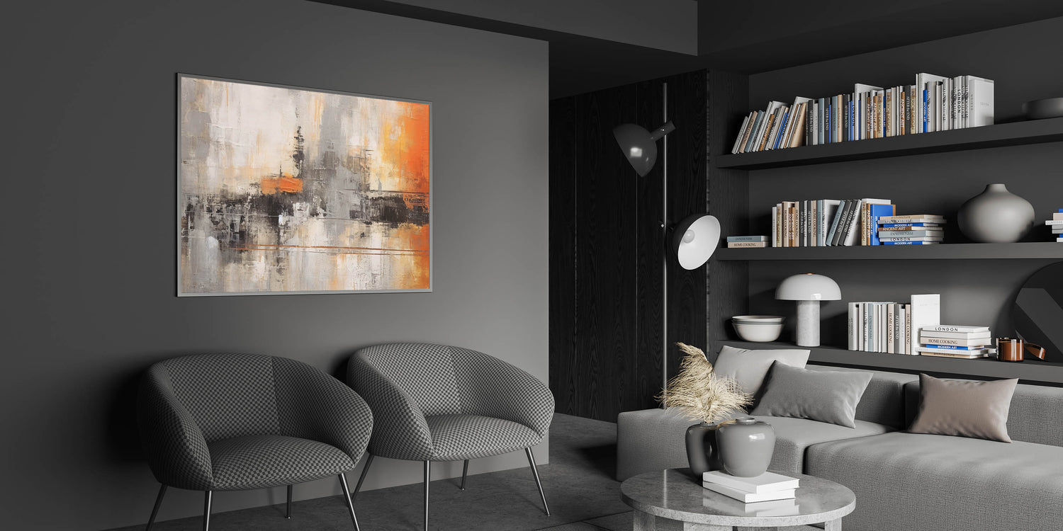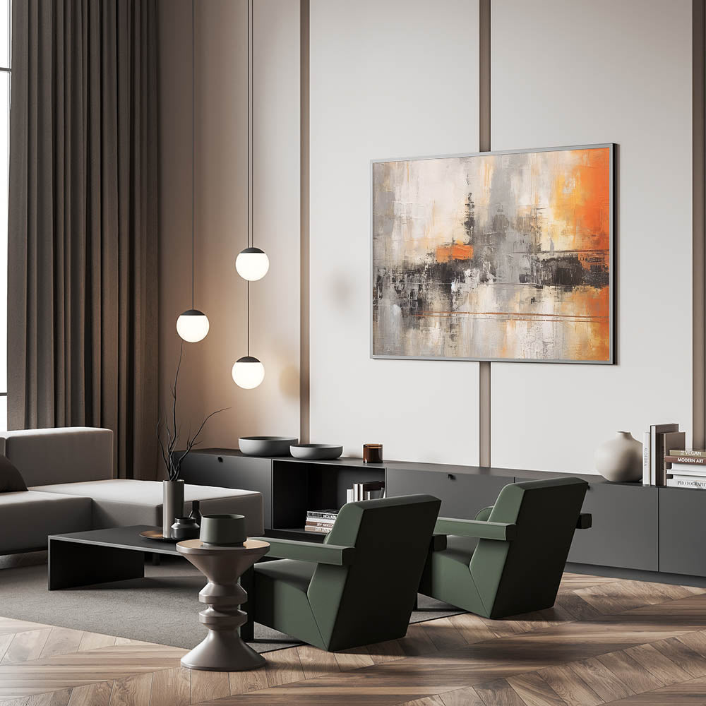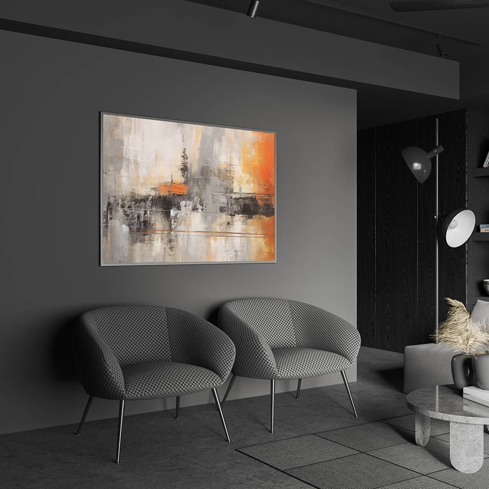 Bring a bold yet elegant statement piece to your home décor with this abstract strokes artwork. The blend of gray and orange tones adds a lively yet calming effect, making it a versatile choice for any interior.