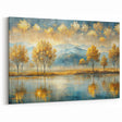 Transform your space with this enchanting piece of abstract landscape art. The "Artistic Landscape Designs" canvas showcases a breathtaking scene of golden trees reflecting in a serene lake, set against a backdrop of soft blue mountains. The harmonious blend of warm golds and cool blues creates a stunning contrast that captures the beauty of nature in a modern and elegant style.