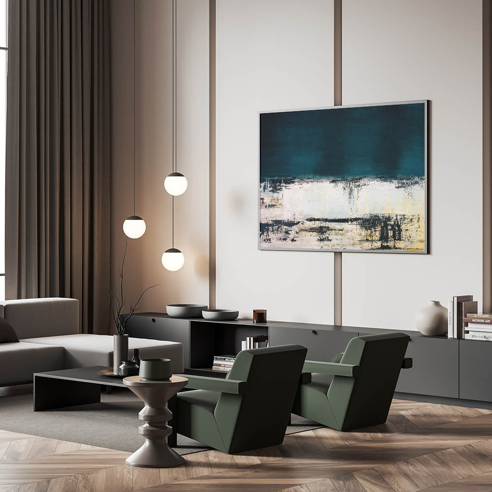 Introduce a sense of tranquility and depth to your space with this Calm Abstract Line Art. Featuring textured blue and white strokes, this piece creates a serene and sophisticated atmosphere, perfect for any contemporary or classic interior setting.