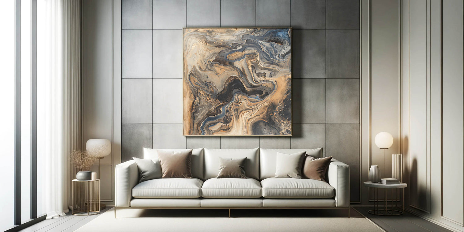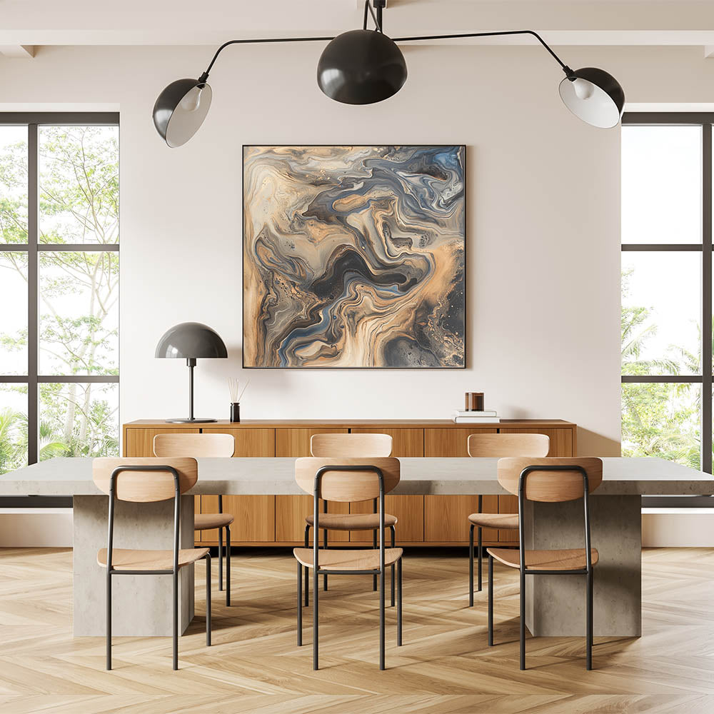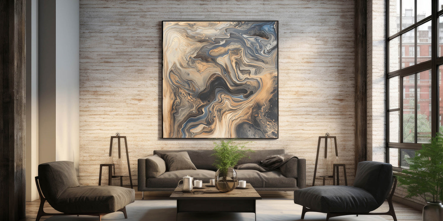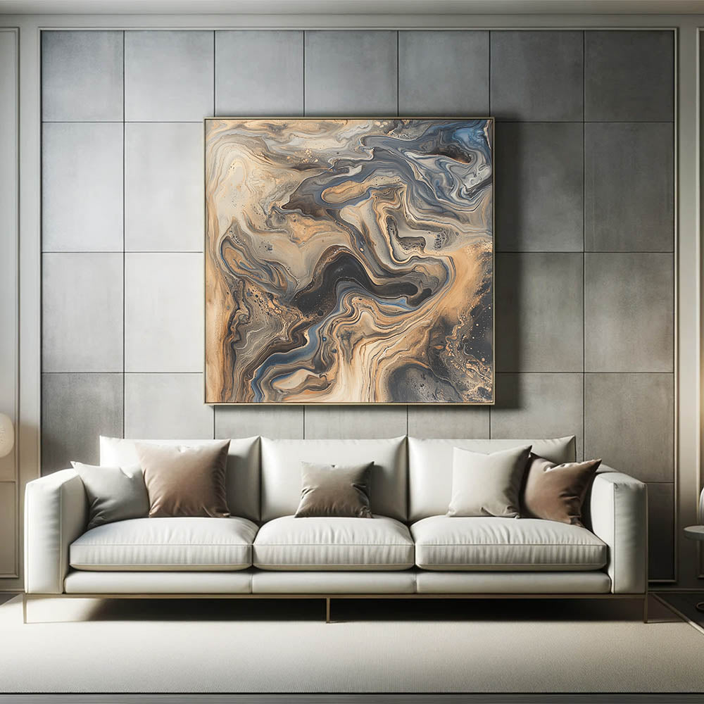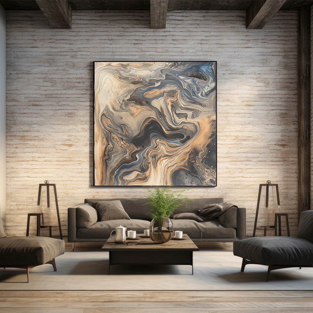 Immerse yourself in the natural elegance of this Earthy Abstract Marble Art. Featuring swirling tones of beige, black, and muted gold with hints of deep blue, this artwork creates a mesmerizing marbled effect that exudes sophistication and warmth. The fluid textures and organic patterns make this piece an ideal addition to modern, minimalist, or earthy decor themes.