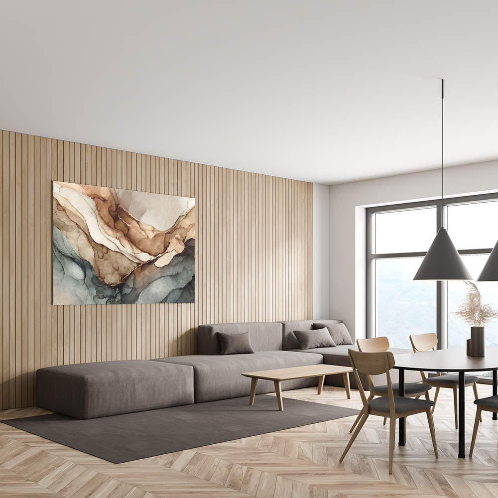 - Nature-Inspired Design: The artwork's organic lines and earthy colors are reminiscent of natural landscapes, bringing a touch of the outdoors inside.