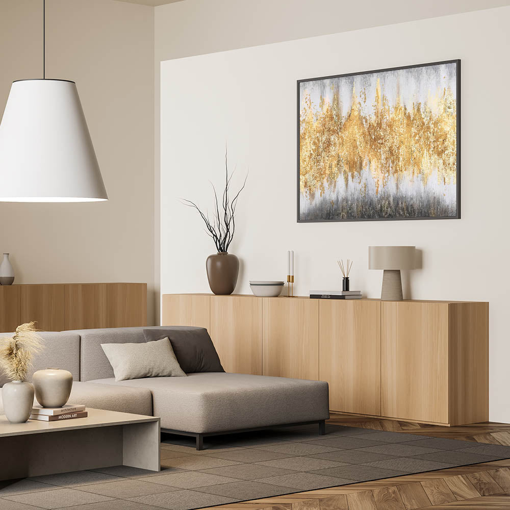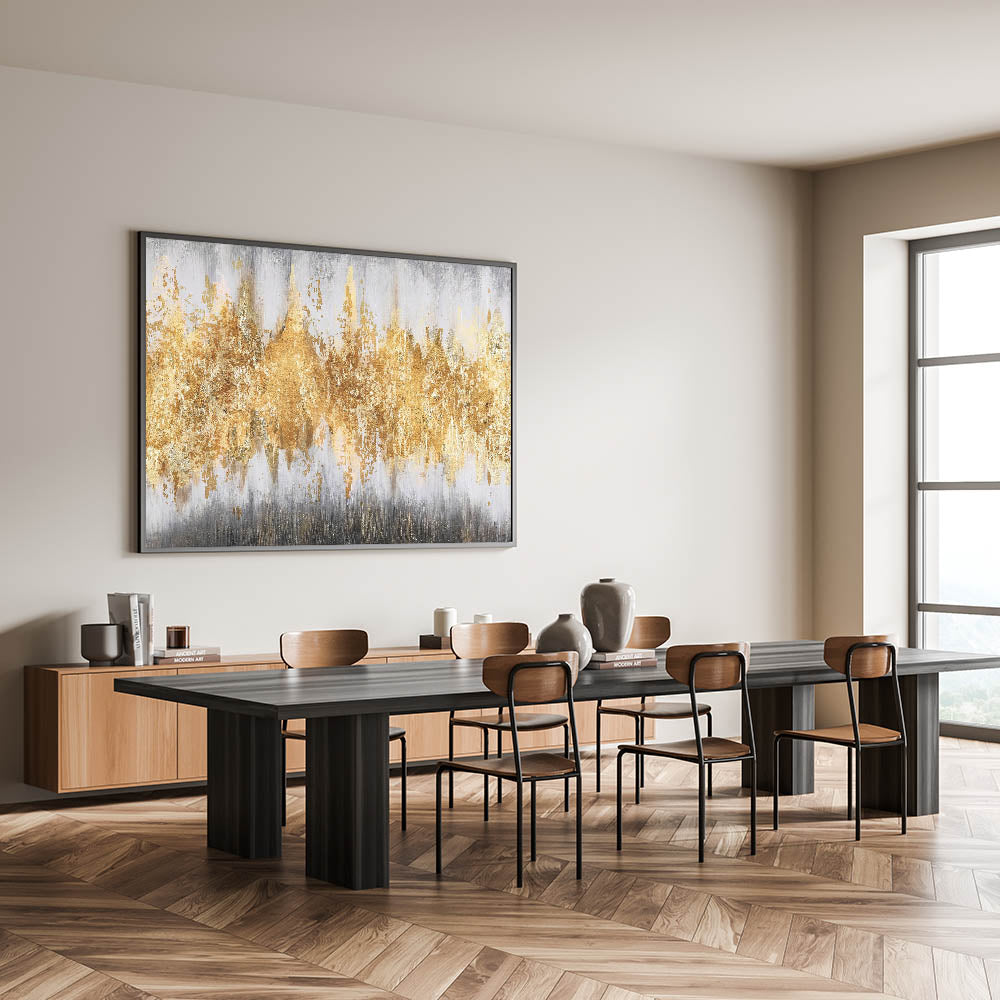 Transform your space with this stunning piece of contemporary line art. The harmonious blend of gold, black, and white hues will seamlessly integrate with modern and minimalist interiors, making it a versatile addition to your art collection. Order now and enhance your interior with this beautiful abstract brush strokes artwork.
