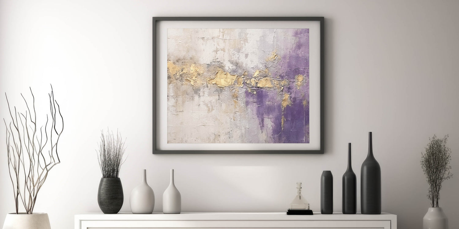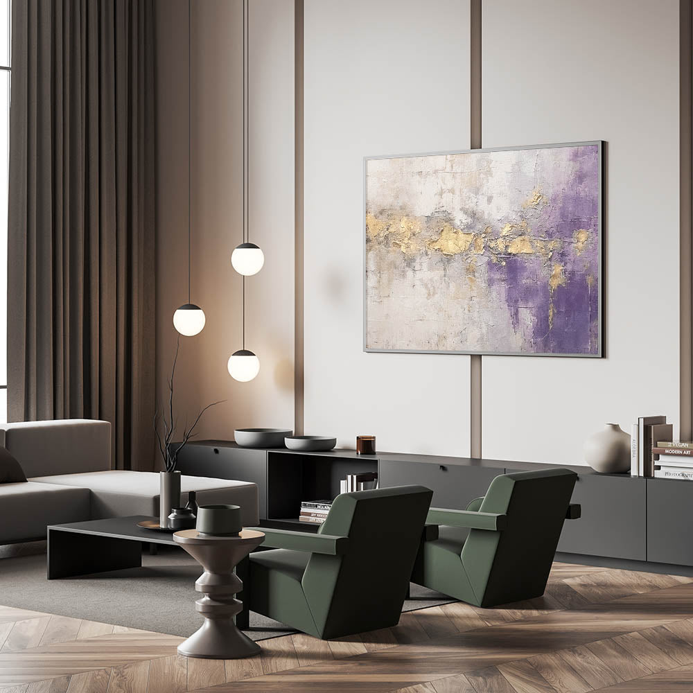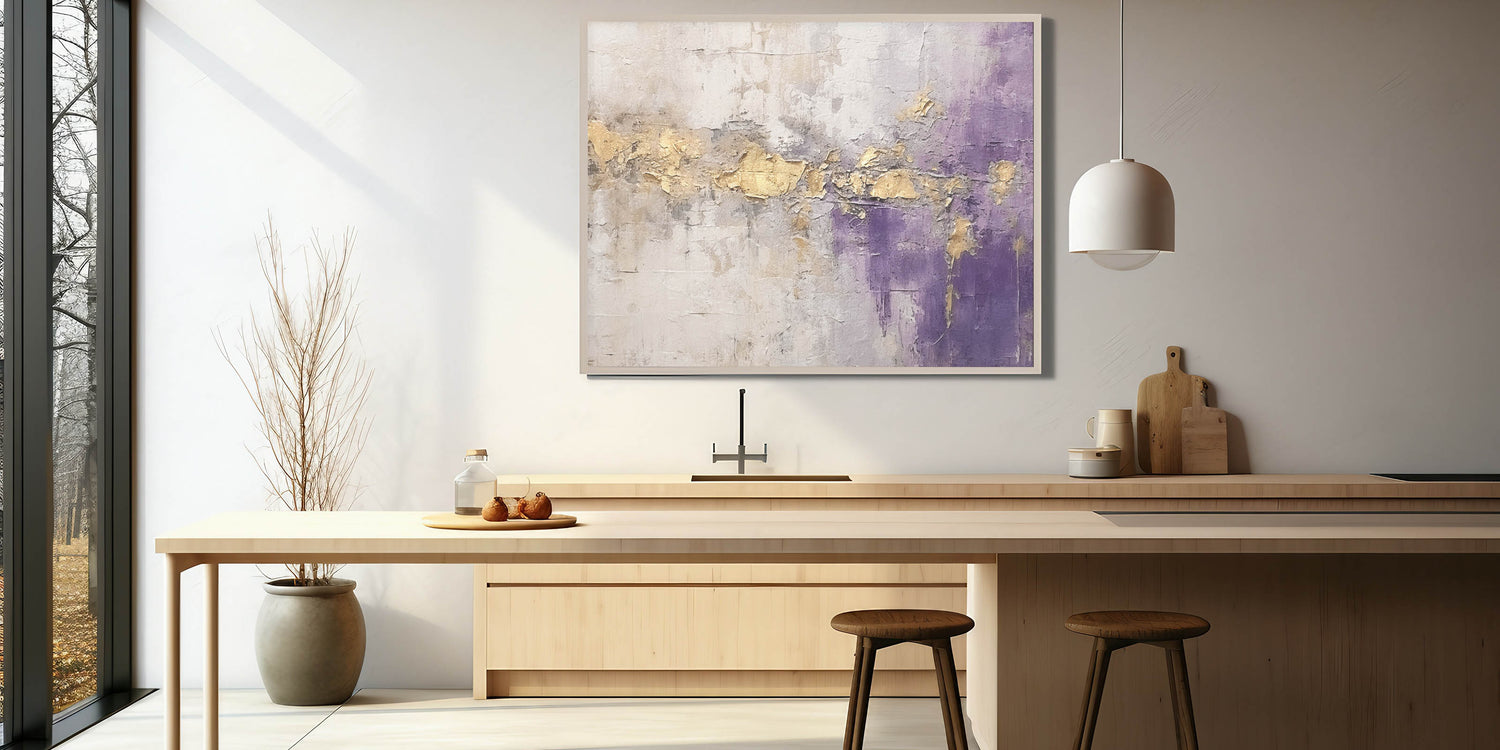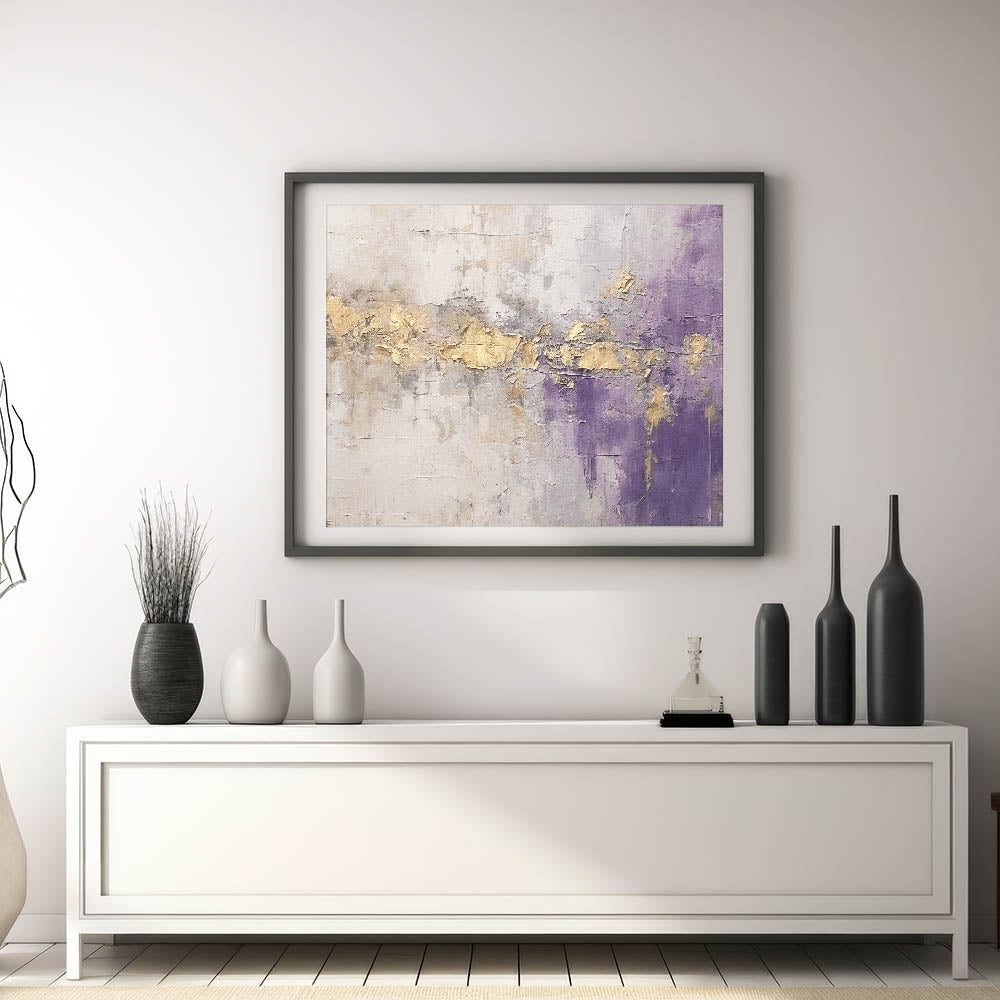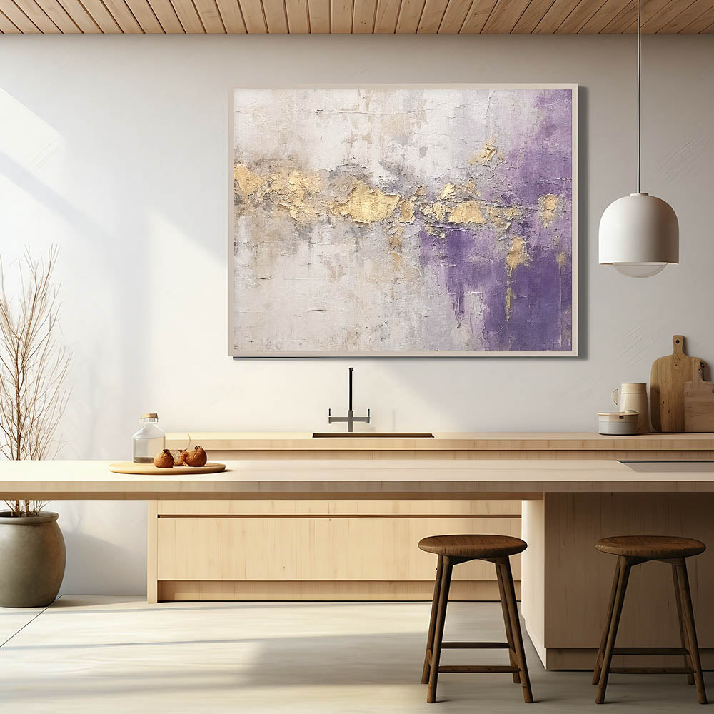 Add a touch of elegance and artistic flair to your space with this purple and gold abstract strokes wall art. Its luxurious textures and bold colors make it an ideal choice for those who appreciate high-end, modern art.