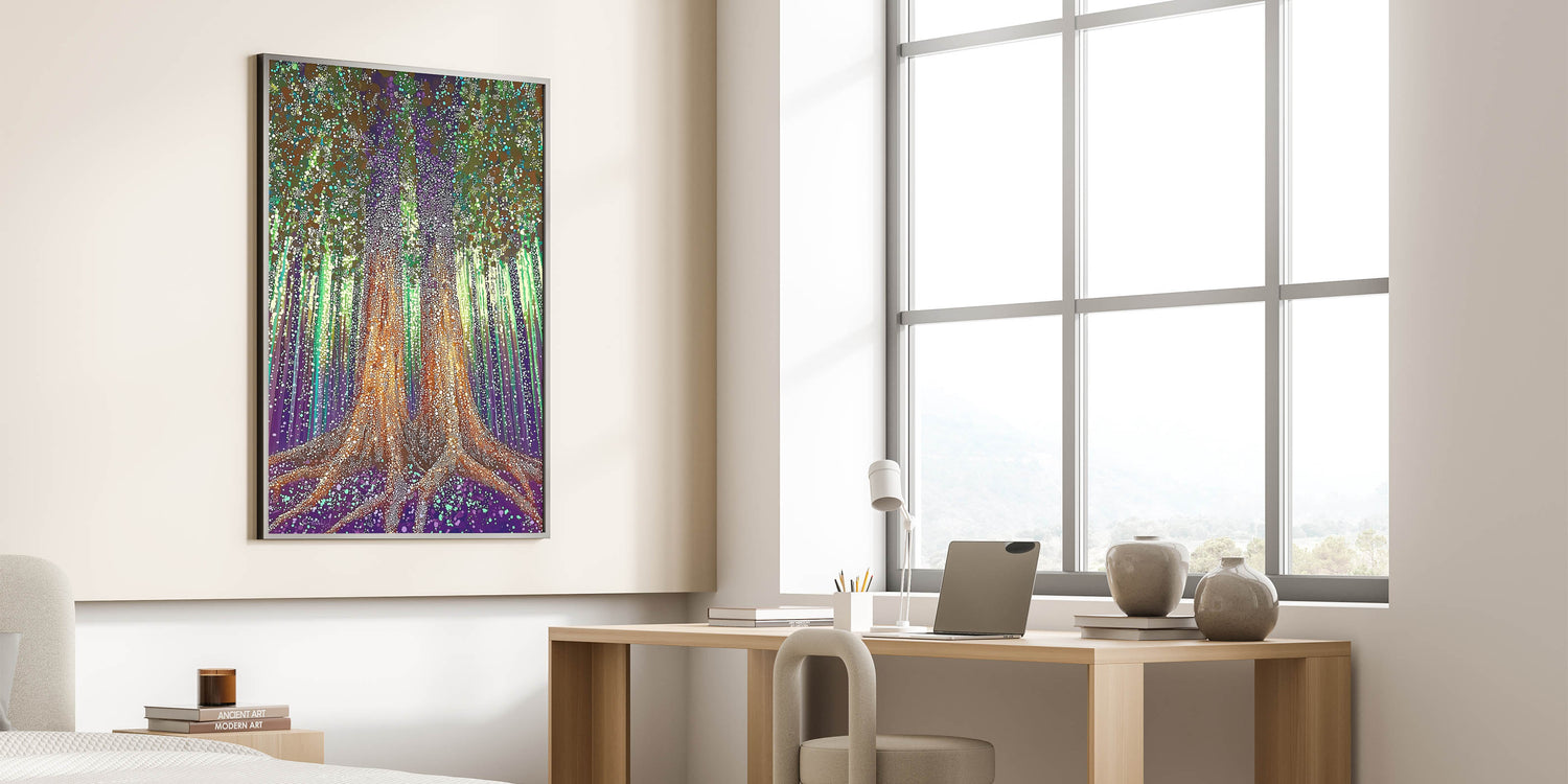Bring the enchanting beauty of a mystical forest to your walls with this modern floral abstract, designed to spark curiosity and creativity. Whether for personal use or as a thoughtful gift, Enchanted Forest adds depth and elegance to any space.