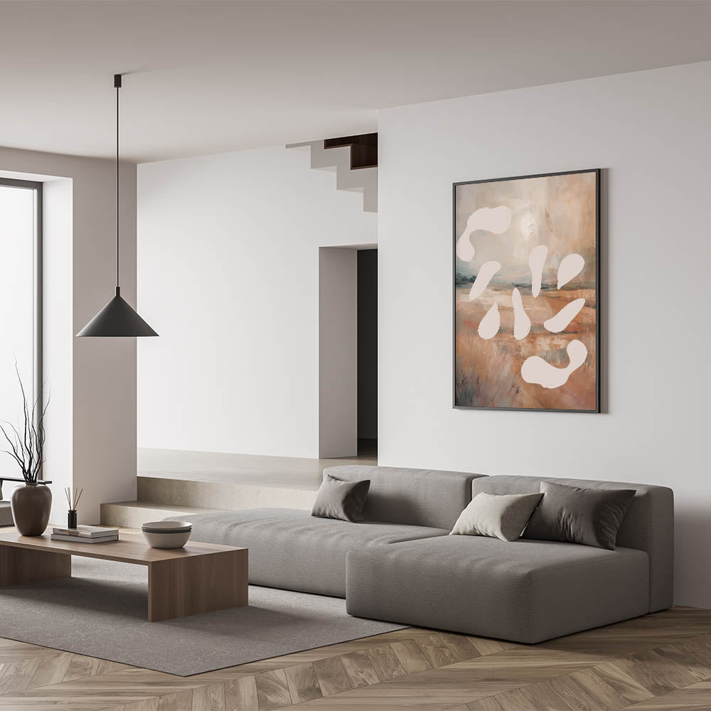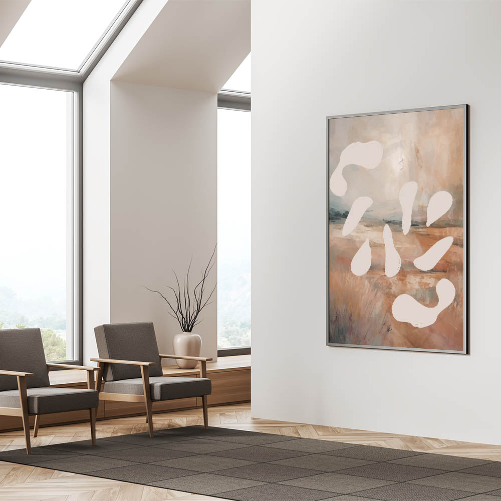 Introduce a touch of elegance and simplicity to your home with this stunning piece of minimalist abstract art. This artwork features soft earth tones and gentle shapes that create a calming and sophisticated ambiance, perfect for any modern living space.