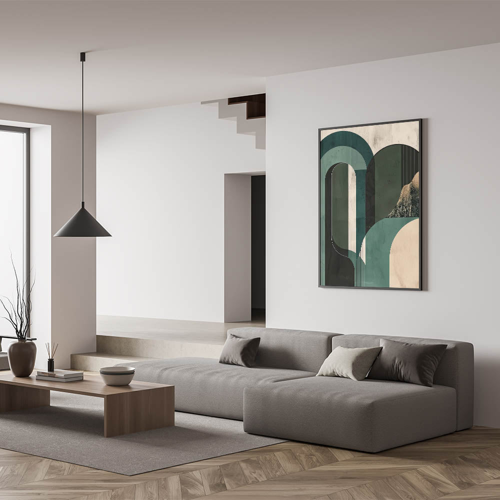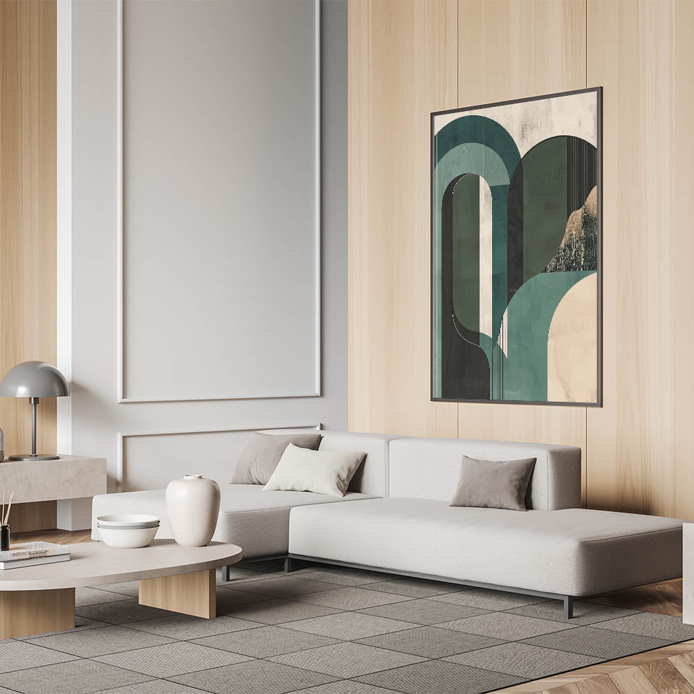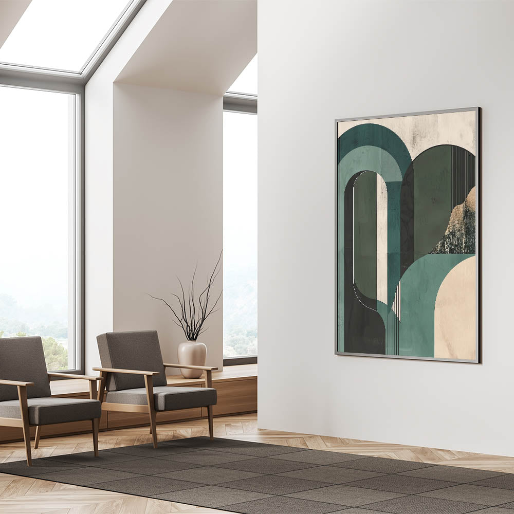 - Sophisticated Design: A blend of geometric forms with rich green and beige tones for a balanced, modern aesthetic.