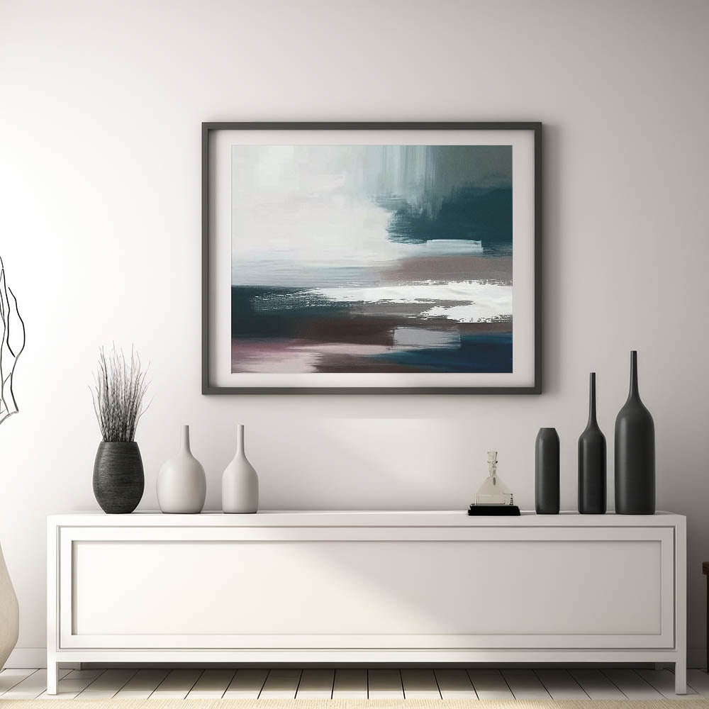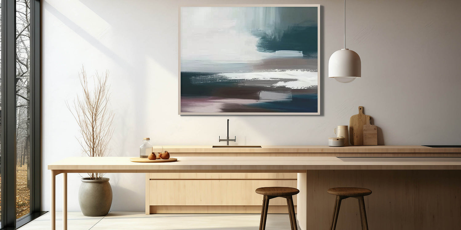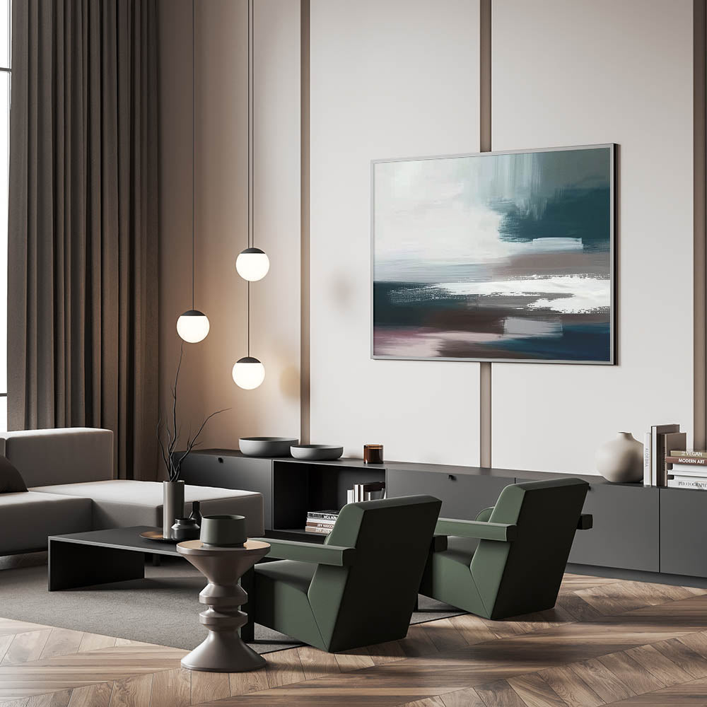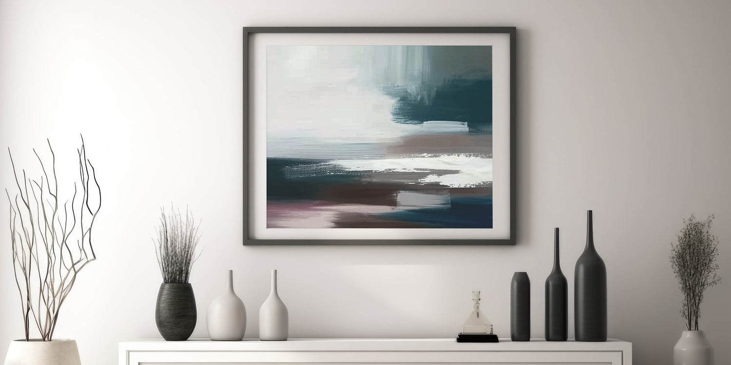 Elevate your space with the sleek and contemporary "Minimalist Abstract Strokes Canvas," featuring a refined blend of black, white, and teal tones. This artwork embodies the essence of modern minimalism, with bold brush strokes creating a dynamic yet serene composition. The use of contrasting colors and fluid lines evokes a sense of movement and depth, making it a versatile piece suitable for a variety of decor styles.