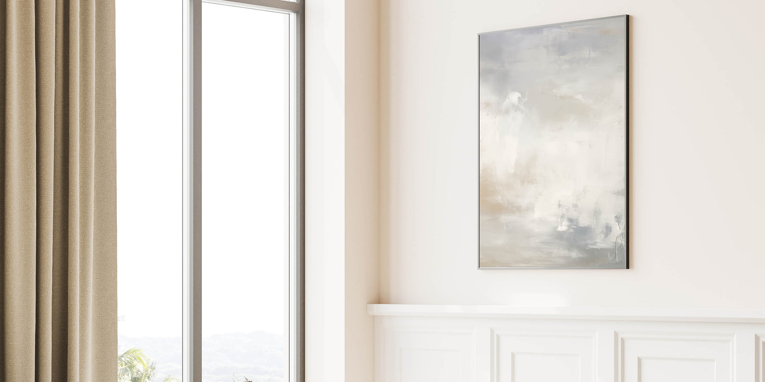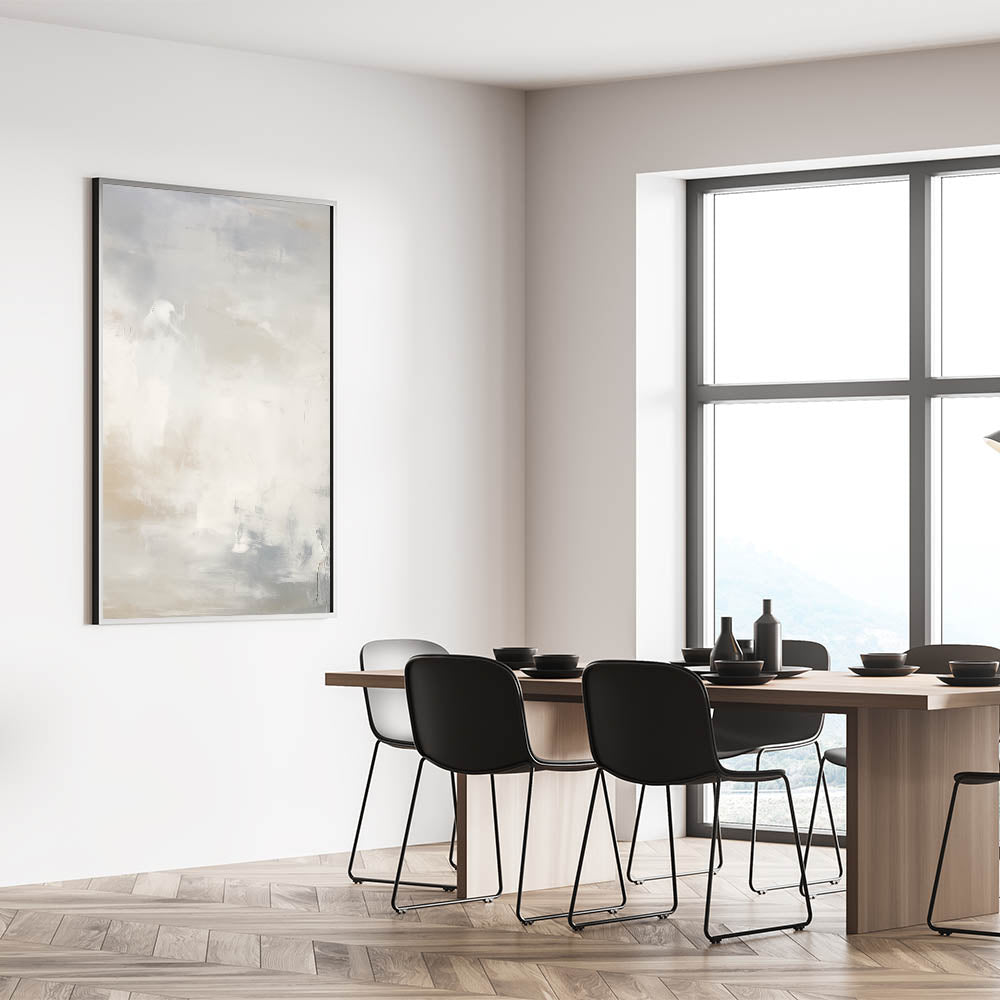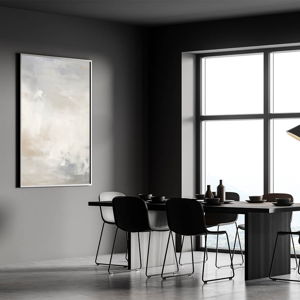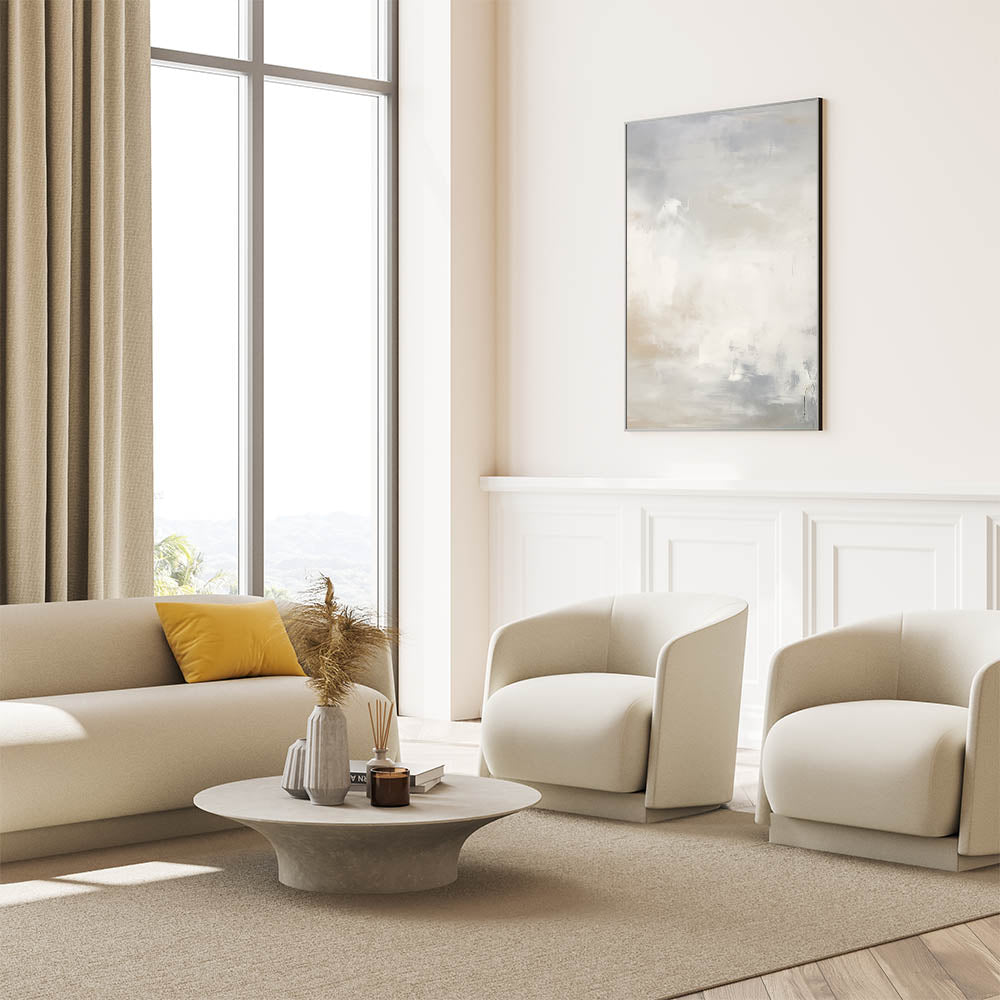 This abstract wall art adds a sense of calm and serenity to your home, offering a minimalist design that brings balance and elegance. The gentle blending of whites and beiges creates a soothing backdrop, making it perfect for those looking to elevate their space with a soft, understated piece of art.