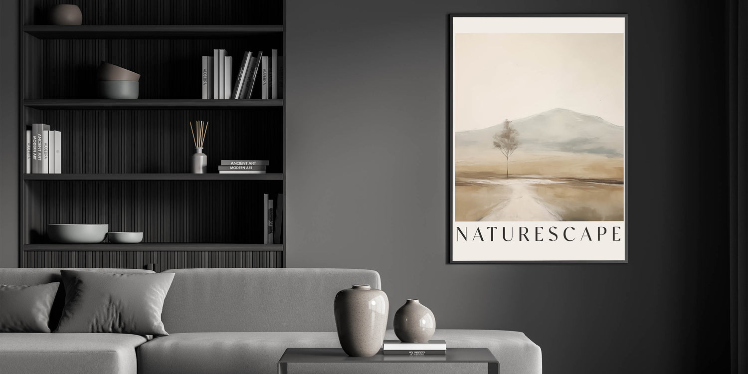 This minimalist naturescape evokes a sense of tranquility and openness, making it an excellent addition to your decor. The clean lines and soft color palette create a visually calming experience, perfect for those seeking a peaceful atmosphere in their home.