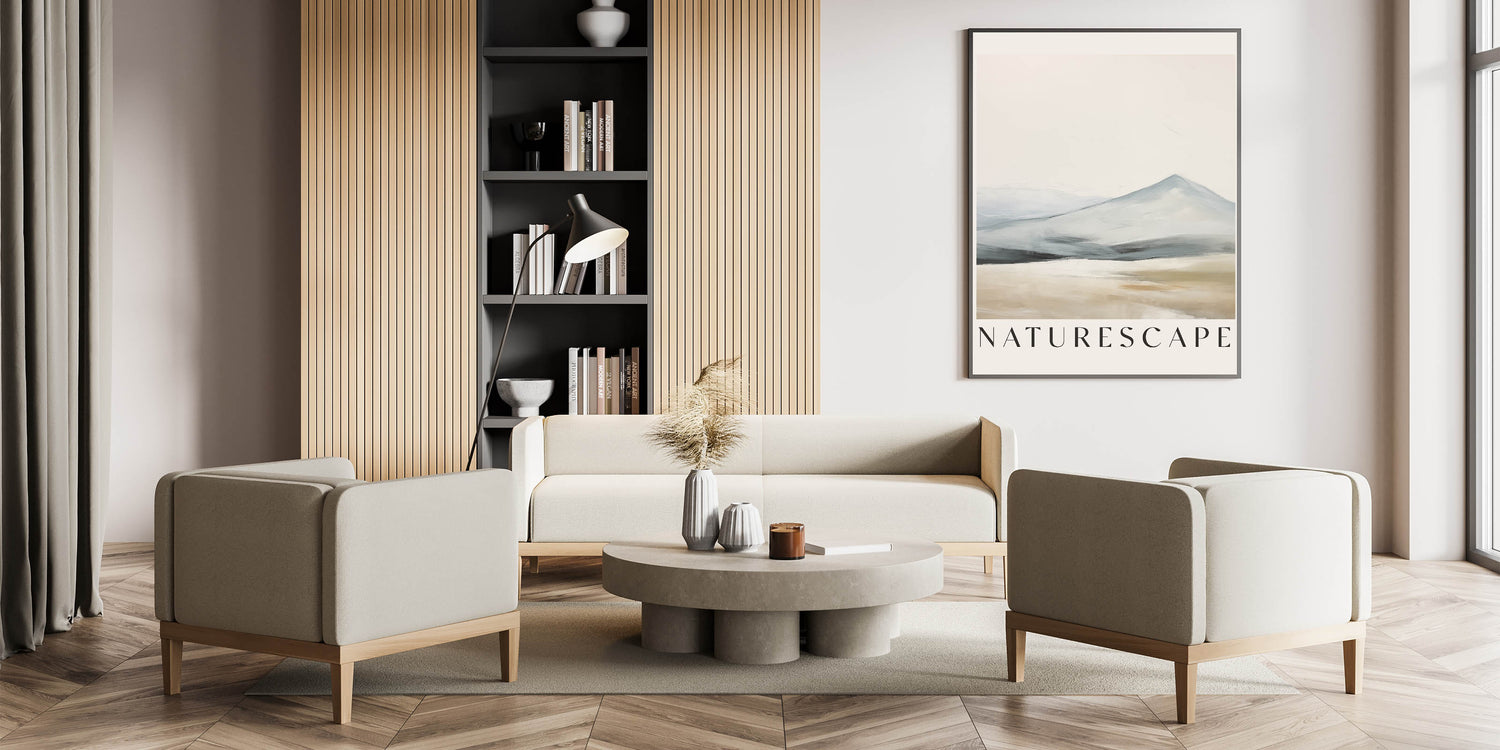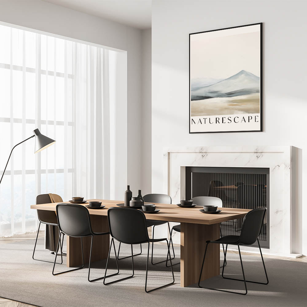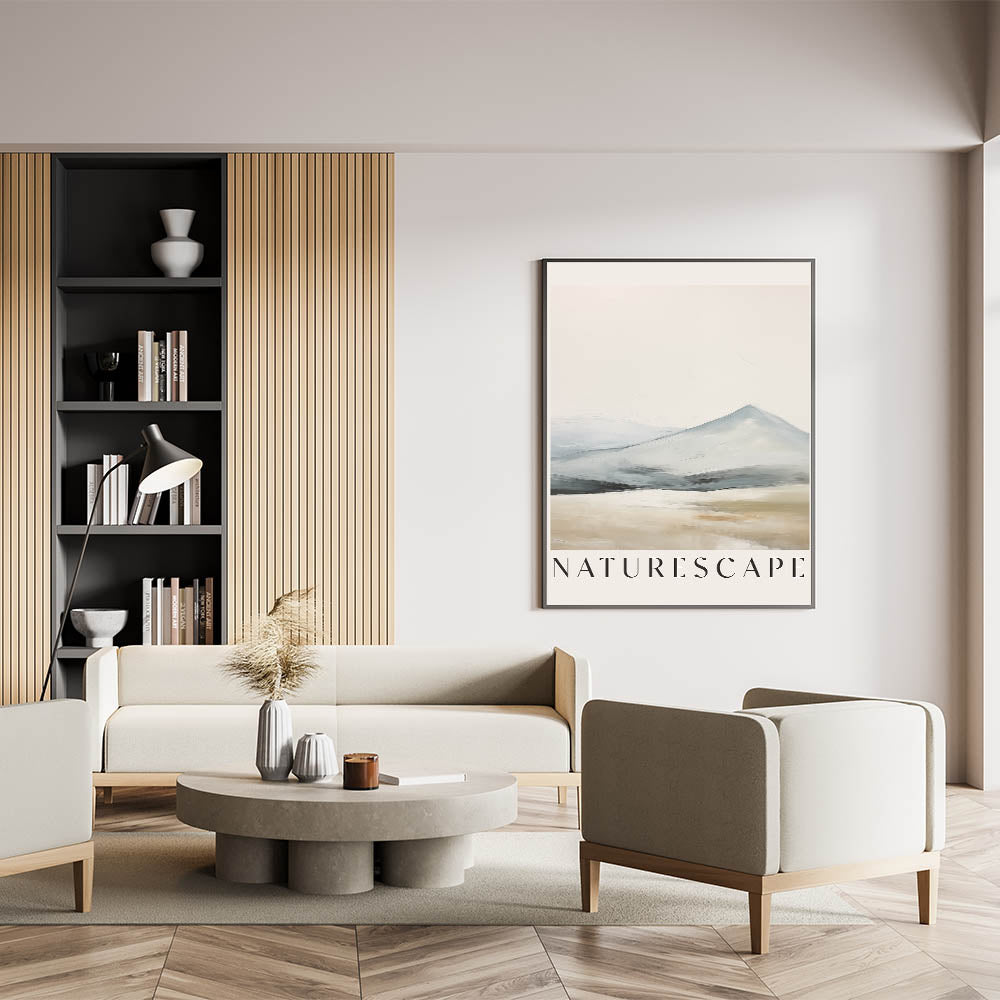 This stunning minimalist landscape art, titled "Naturescape," captures the serene beauty of natural scenery with clean lines and soft color tones. Perfect for minimalist home decor, this artwork evokes a sense of calm and tranquility, making it a timeless piece for modern interiors. Whether you're looking to create a peaceful atmosphere in your living room or office, this elegant minimalist design is an excellent choice.