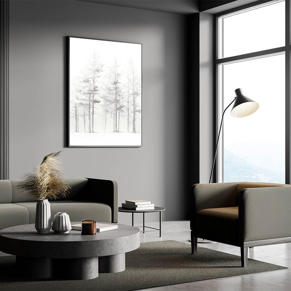 This minimalist forest sketch brings the quiet beauty of the natural world into your home. Its soft tones and simple design make it a versatile piece for a wide range of interior styles, from modern to nature-inspired decor.