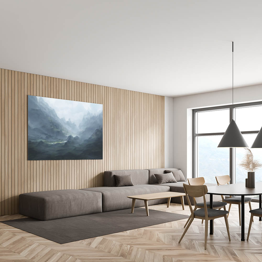 Misty Mountains Abstract Art in Cool Tones – Large Canvas Design