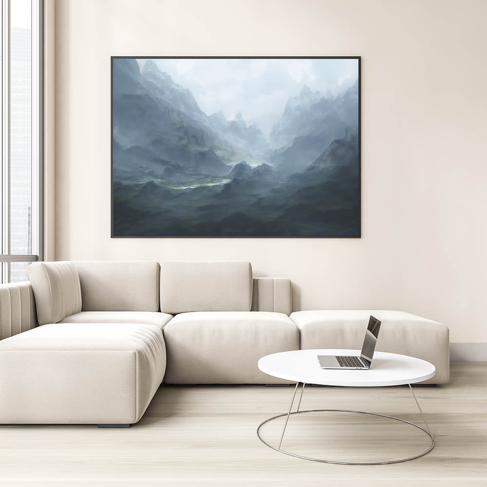 This high-quality abstract art piece is perfect for those who appreciate peaceful and contemplative designs. Whether you're looking to enhance your living room, bedroom, or office, this artwork brings a soothing and atmospheric presence to any space.
