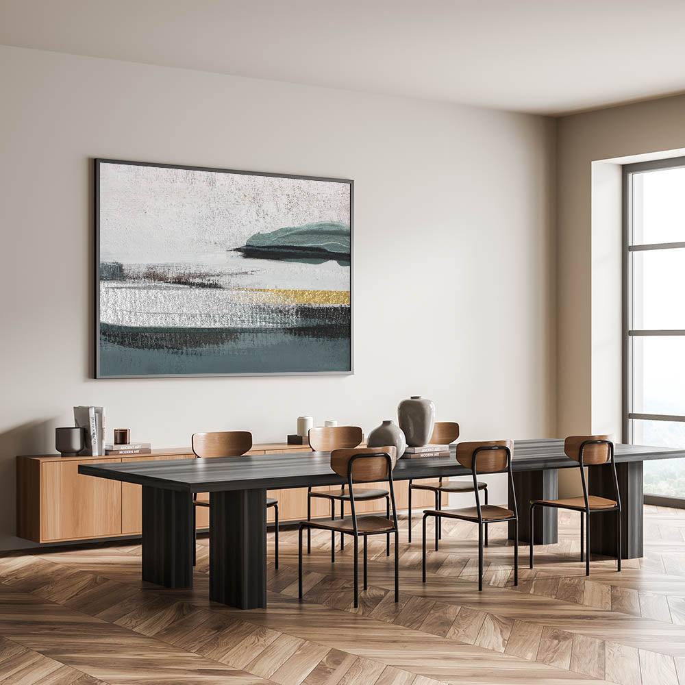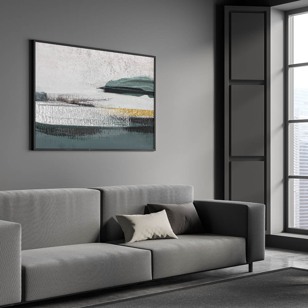 Elevate your home décor with this Modern Abstract Strokes with Gold Accents wall art. This piece combines rich textures and bold brush strokes in shades of gray, white, and deep green, all punctuated by a striking gold accent that adds a touch of luxury. The artwork’s textured layers create depth and intrigue, making it a perfect statement piece for any modern or contemporary space.