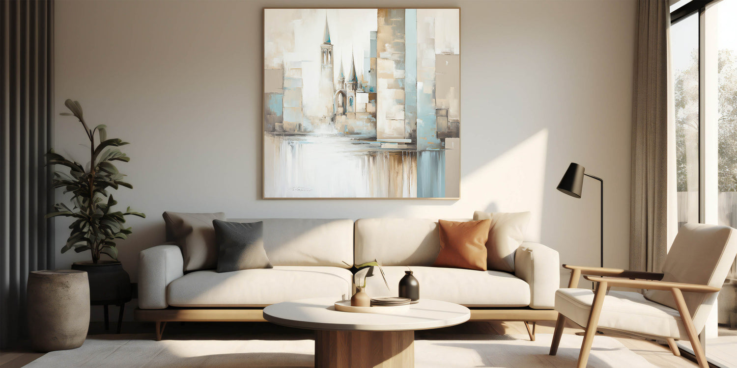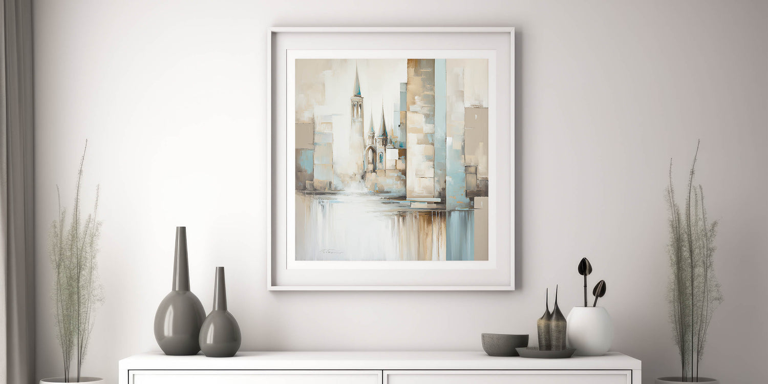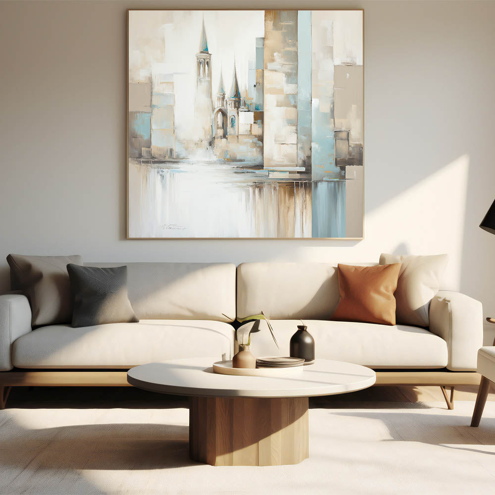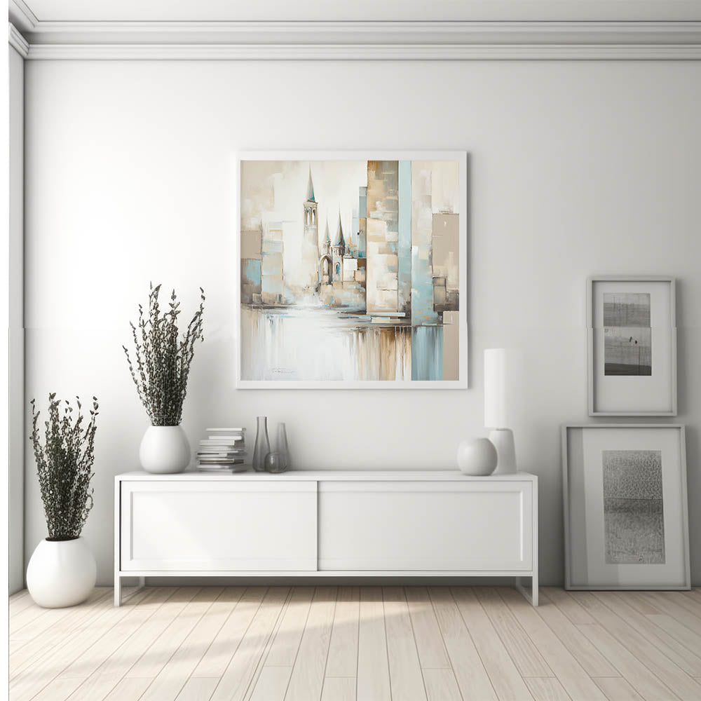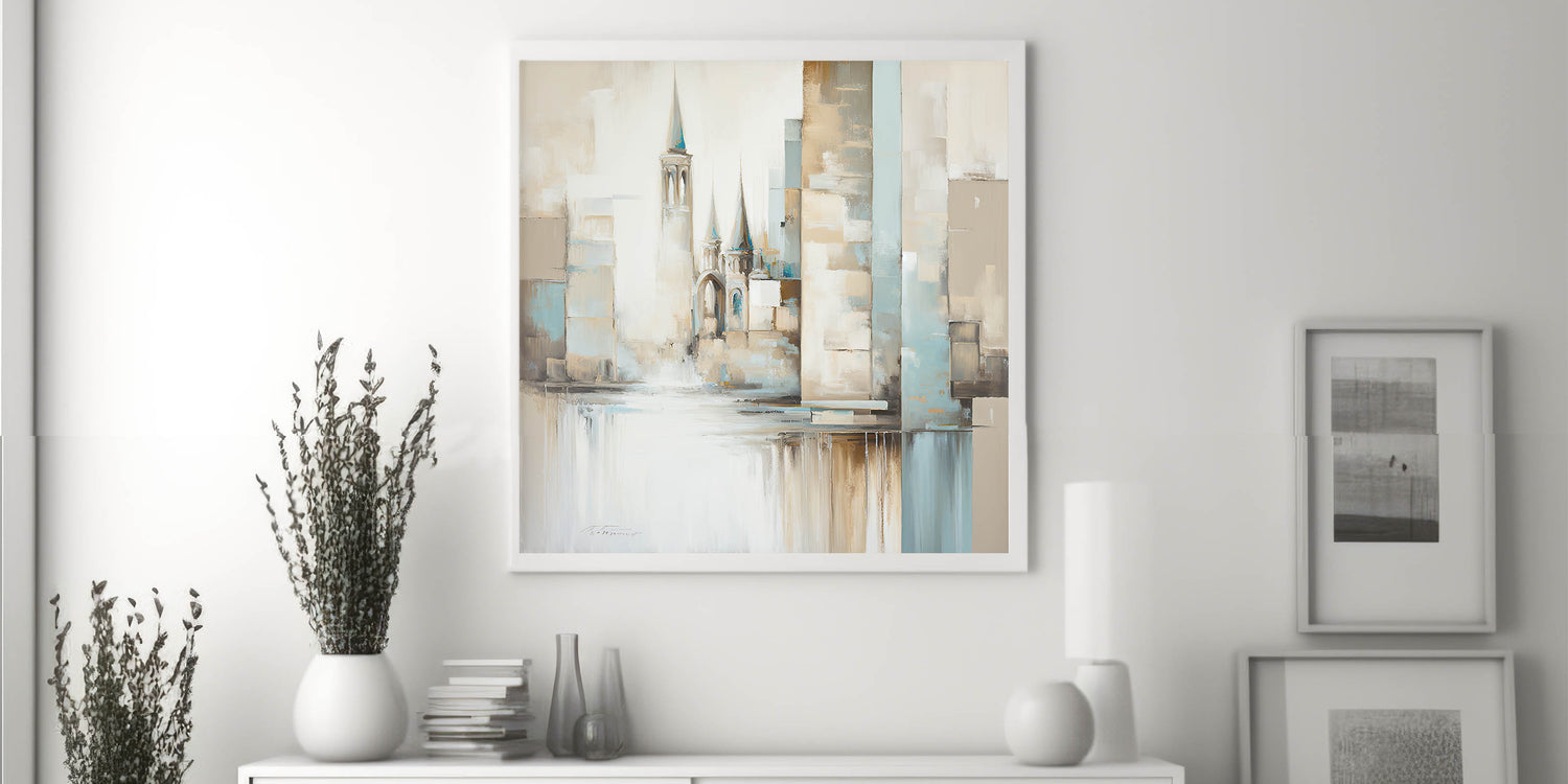 This artwork is designed for those who admire architectural elegance and modern artistry. Its soft color palette and abstract style make it adaptable to various decor themes, offering a graceful focal point that enhances any room’s atmosphere.