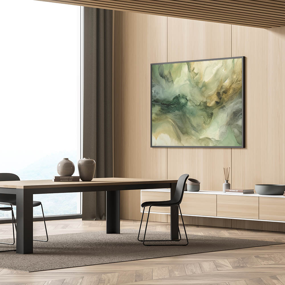 Embrace the tranquility of nature with this Nature-Inspired Strokes and Lines Abstract Art. Featuring a soothing palette of greens, yellows, and earthy tones, this artwork captures the serene essence of a spring meadow. The fluid strokes and gentle line patterns create a harmonious flow, making it an ideal piece for spaces that seek a touch of natural beauty and calm.