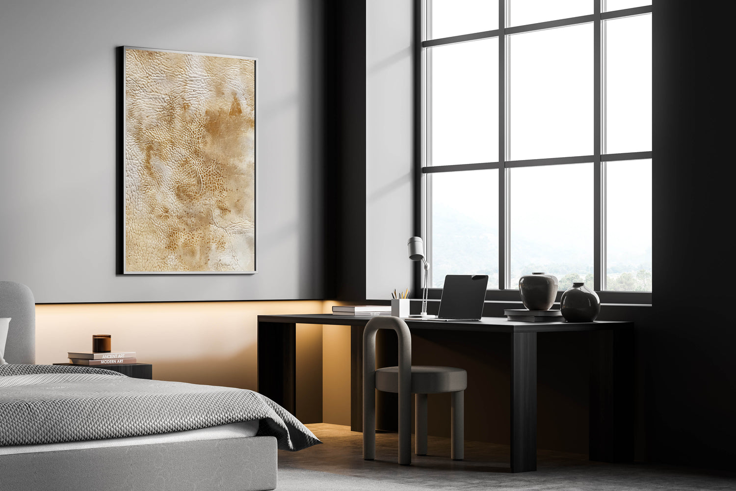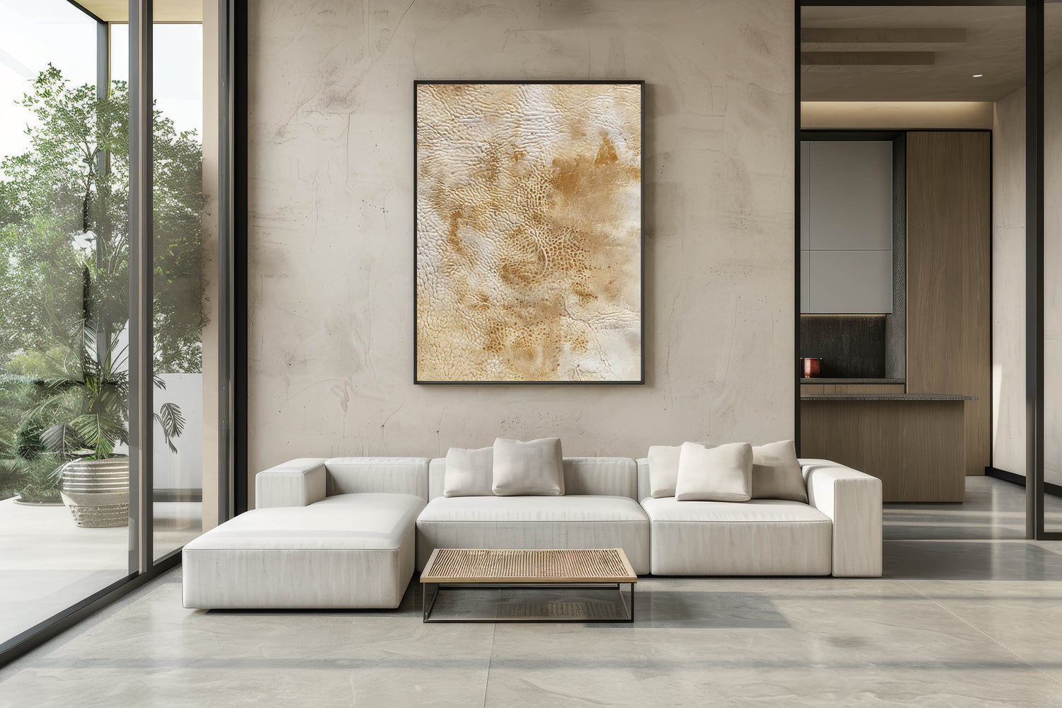Introduce a touch of organic elegance to your decor with this textured abstract canvas art. The artwork features intricate patterns and textures, blending shades of beige, cream, and soft brown. Its natural, earthy appearance evokes the look of weathered stone or the delicate surface of sand dunes. This piece is perfect for those who appreciate the raw beauty of nature-inspired designs.