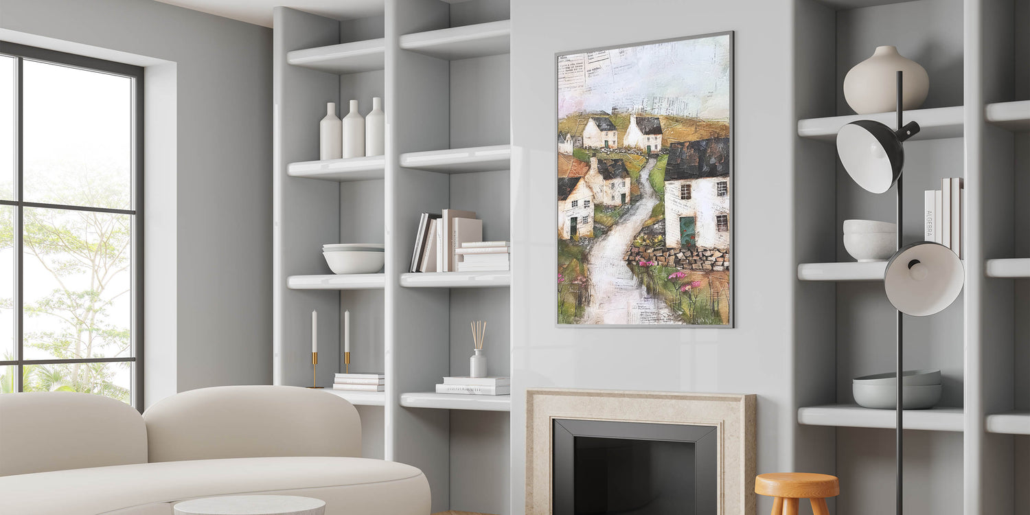 • High-quality print showcasing a serene village scene with rich textures