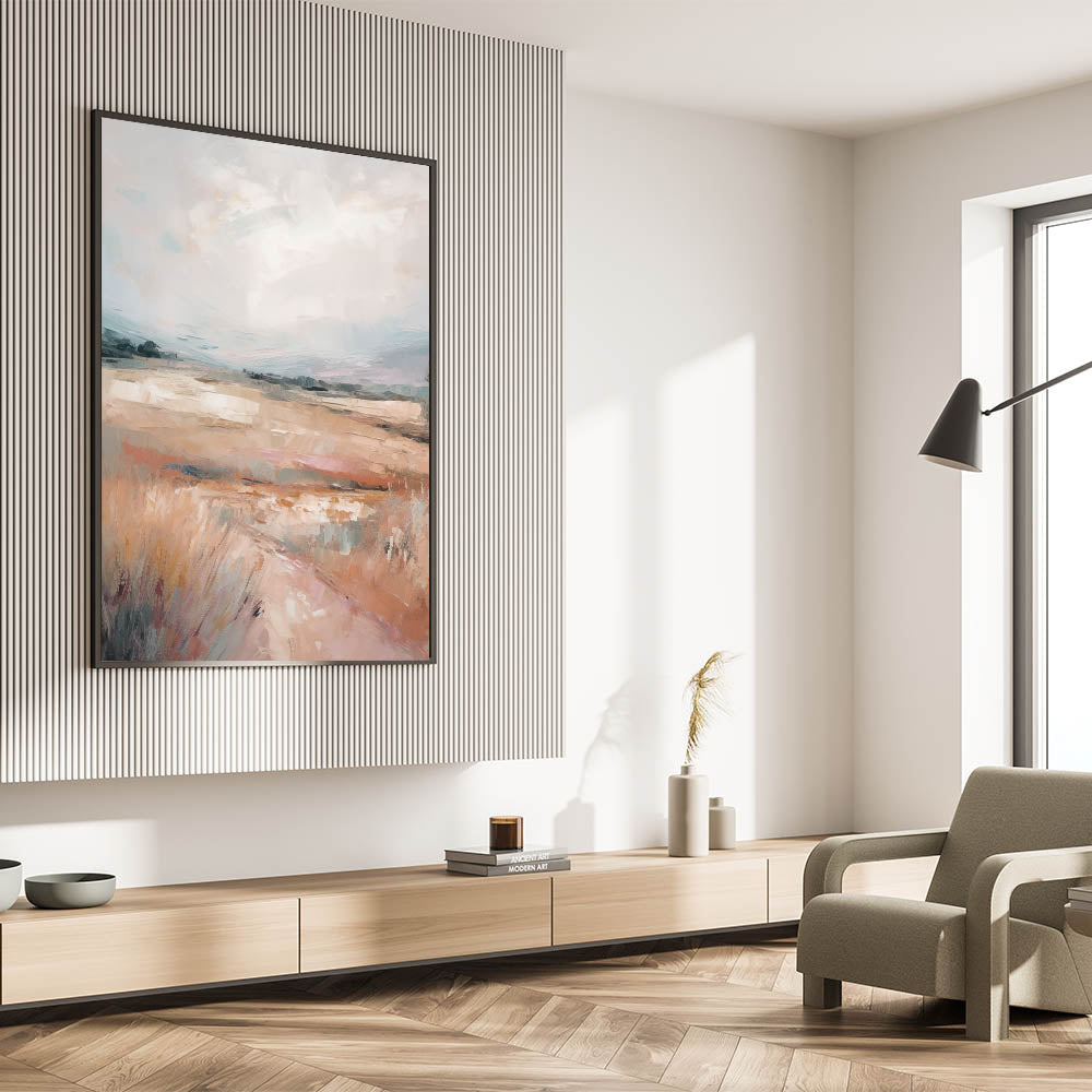 Transform your space with this serene minimalist landscape art. Featuring soft brushstrokes and a calming blend of pastel tones, this artwork captures the essence of nature in a beautifully abstract way. The subtle shifts in color and texture evoke peaceful landscapes, making it the perfect addition to contemporary and modern interiors.