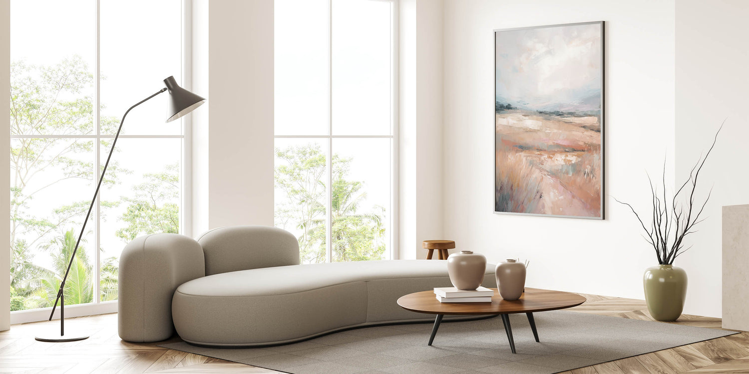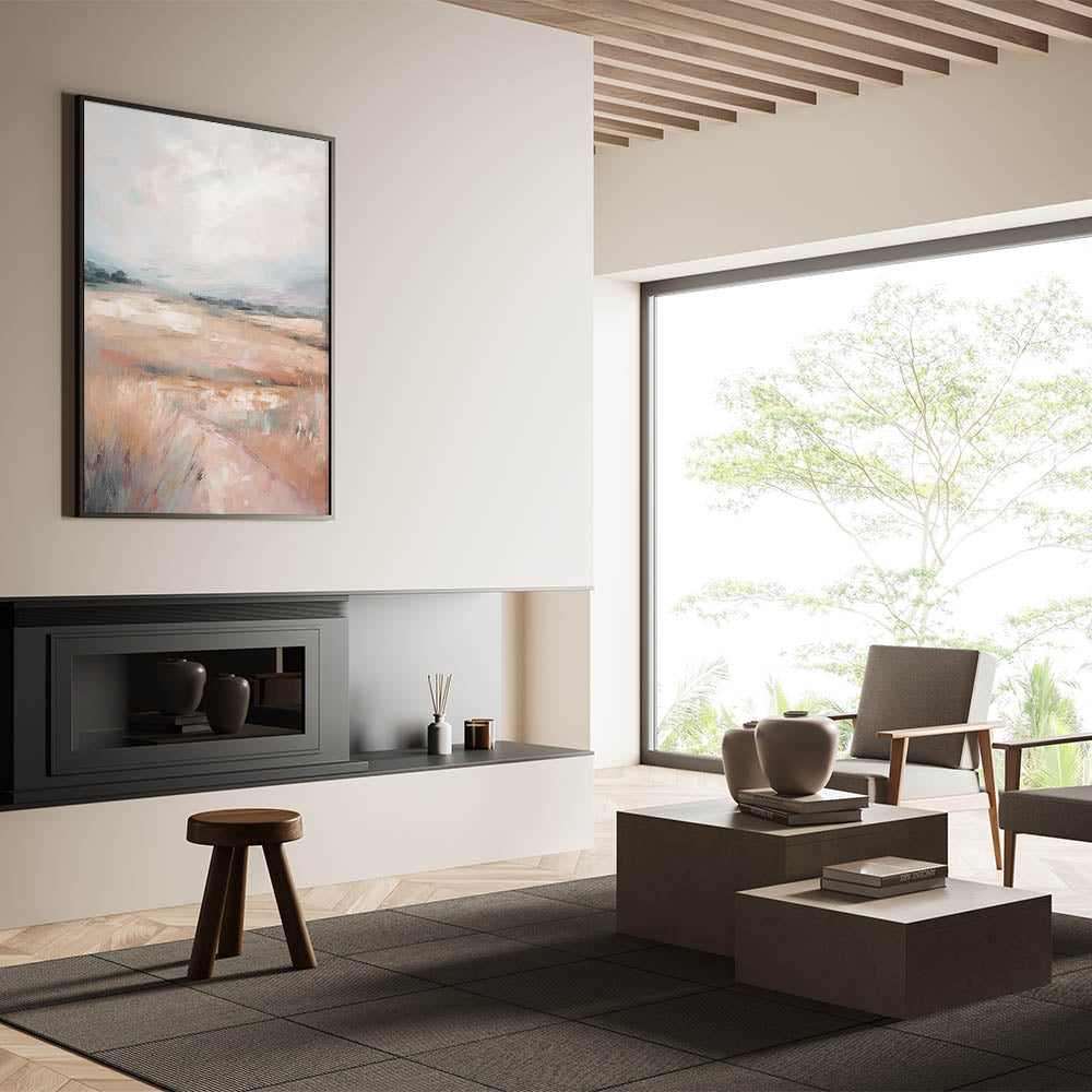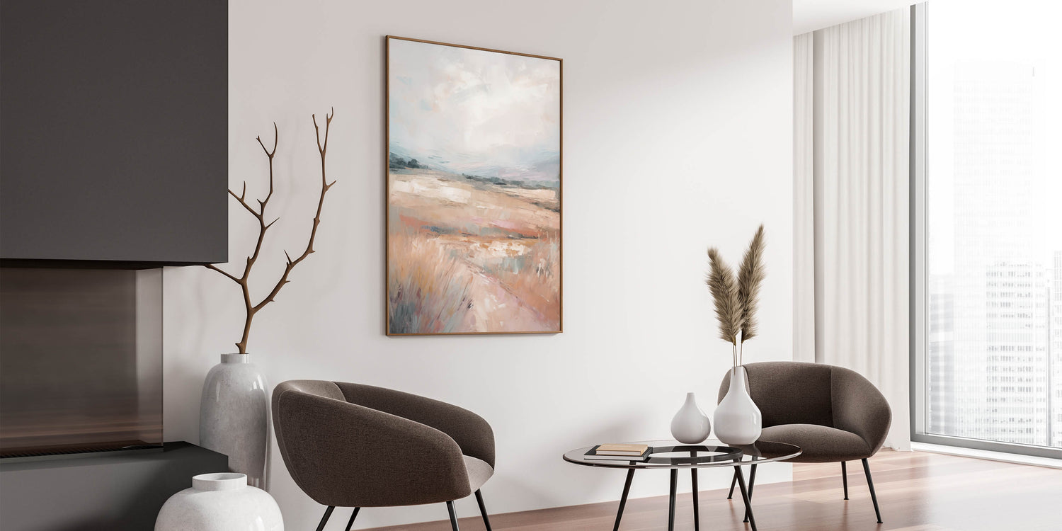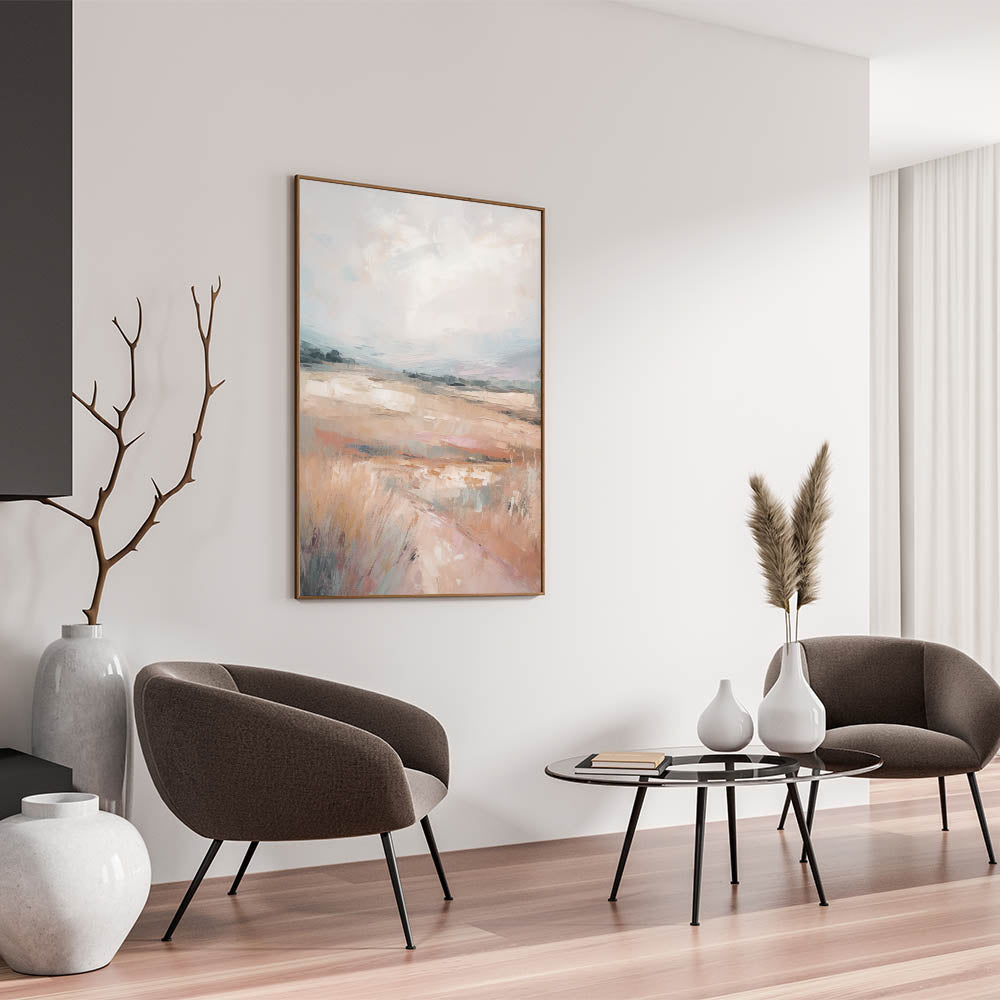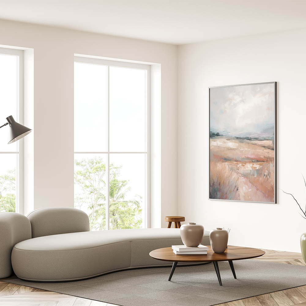 Ideal for living rooms, bedrooms, or offices, this minimalist landscape art brings a sense of peace and elegance to your environment. The subtle pastel tones and abstract design make it a perfect piece for those who appreciate contemporary minimalist decor.
