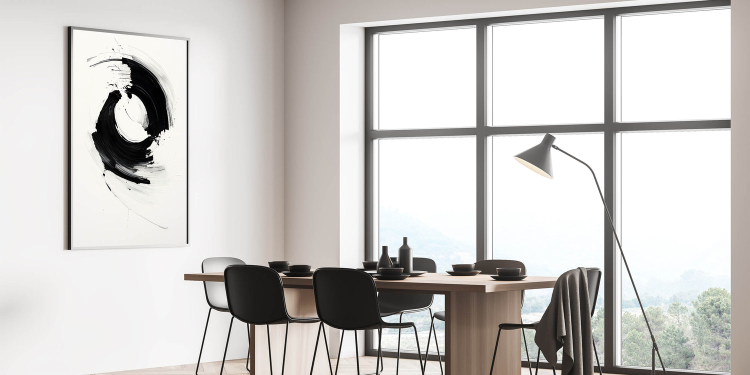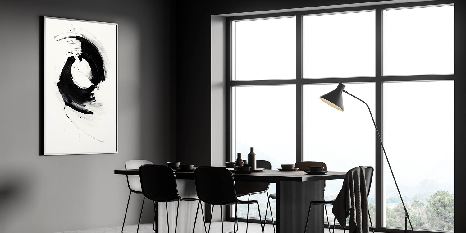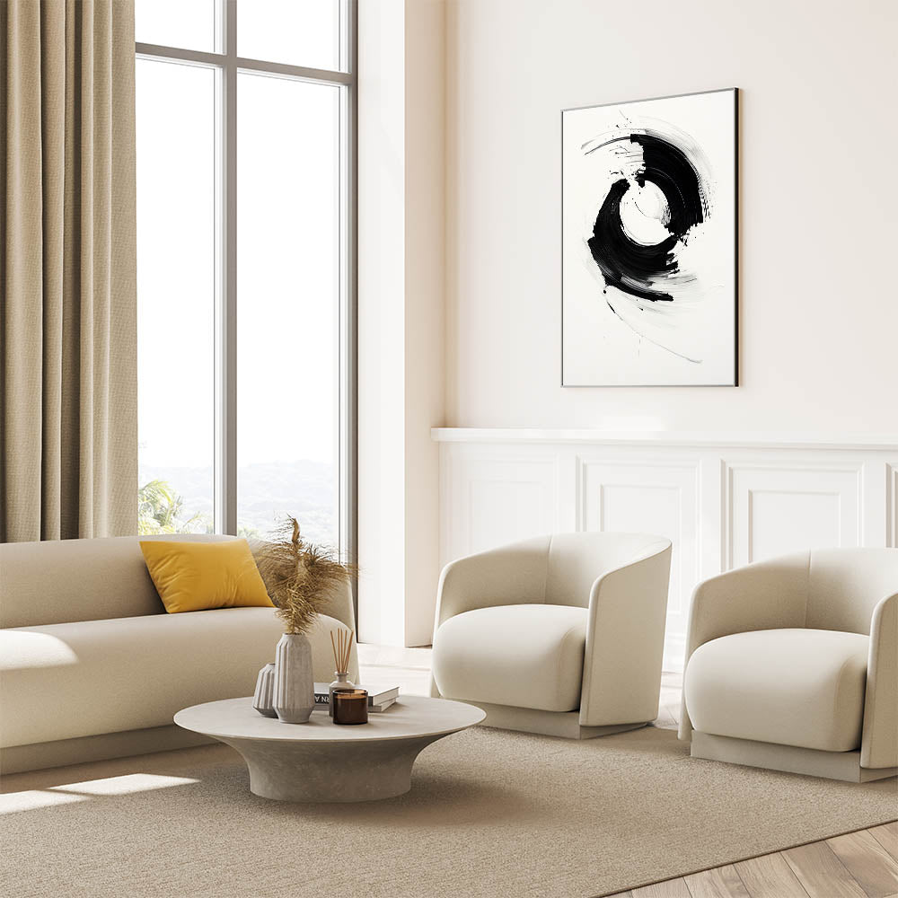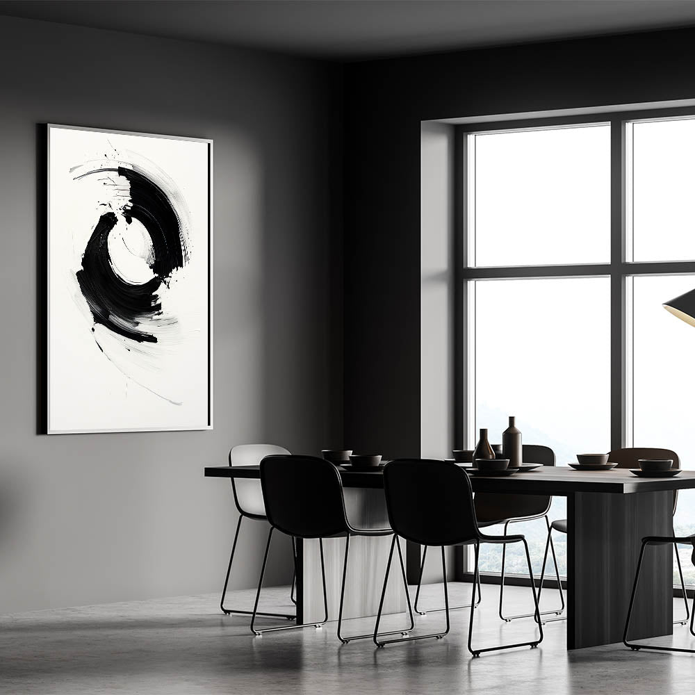 Add a bold, modern touch to your home with this striking minimalist wall art. Featuring an elegant circular design in black and white, this abstract artwork captures the essence of simplicity and sophistication. Its minimalist aesthetic makes it a perfect addition to contemporary interiors, whether for a living room, bedroom, or office space.