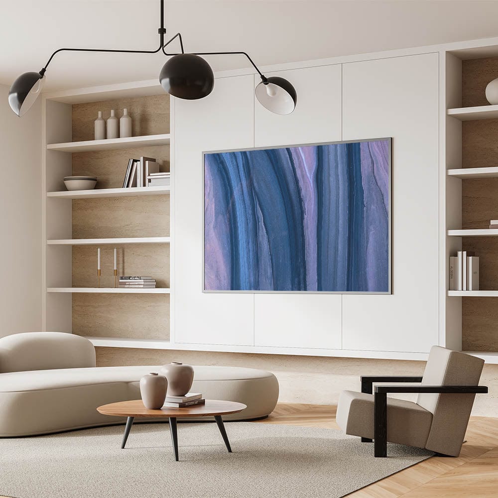 Serene Abstract Fluid Canvas – Contemporary Blue & Plum Art