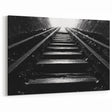 Add a touch of dramatic elegance to your space with this striking black-and-white Adelaide wall art. Featuring a powerful image of railroad tracks leading into the light, this piece evokes a sense of journey, mystery, and anticipation. The contrasting tones of light and shadow create a visually impactful design that will add a modern, industrial feel to any room.