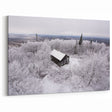 Add a touch of winter tranquility to your space with this stunning Adirondacks wall art. This captivating image showcases a cozy cabin nestled in a snow-covered forest, surrounded by a blanket of frost and towering trees. The peaceful, isolated setting creates a sense of calm and serenity, making this artwork perfect for adding a touch of rustic elegance to any room. The soft winter light and the bright snow contrast beautifully with the dark wood of the cabin, offering a striking balance of natural tones.