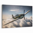 Embrace the spirit of aviation history with this stunning wall art featuring a classic WWII fighter plane captured in mid-flight above the clouds. This piece beautifully showcases the sleek, aerodynamic lines of the aircraft as it soars through the sky, evoking a sense of freedom and adventure. The contrast between the fighter's dark, polished exterior and the soft, luminous clouds creates a captivating visual effect, perfect for any space that celebrates the golden age of aviation.