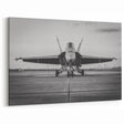 Modern Aviation Art: Fighter Jet on Runway in Monochrome Canvas Print