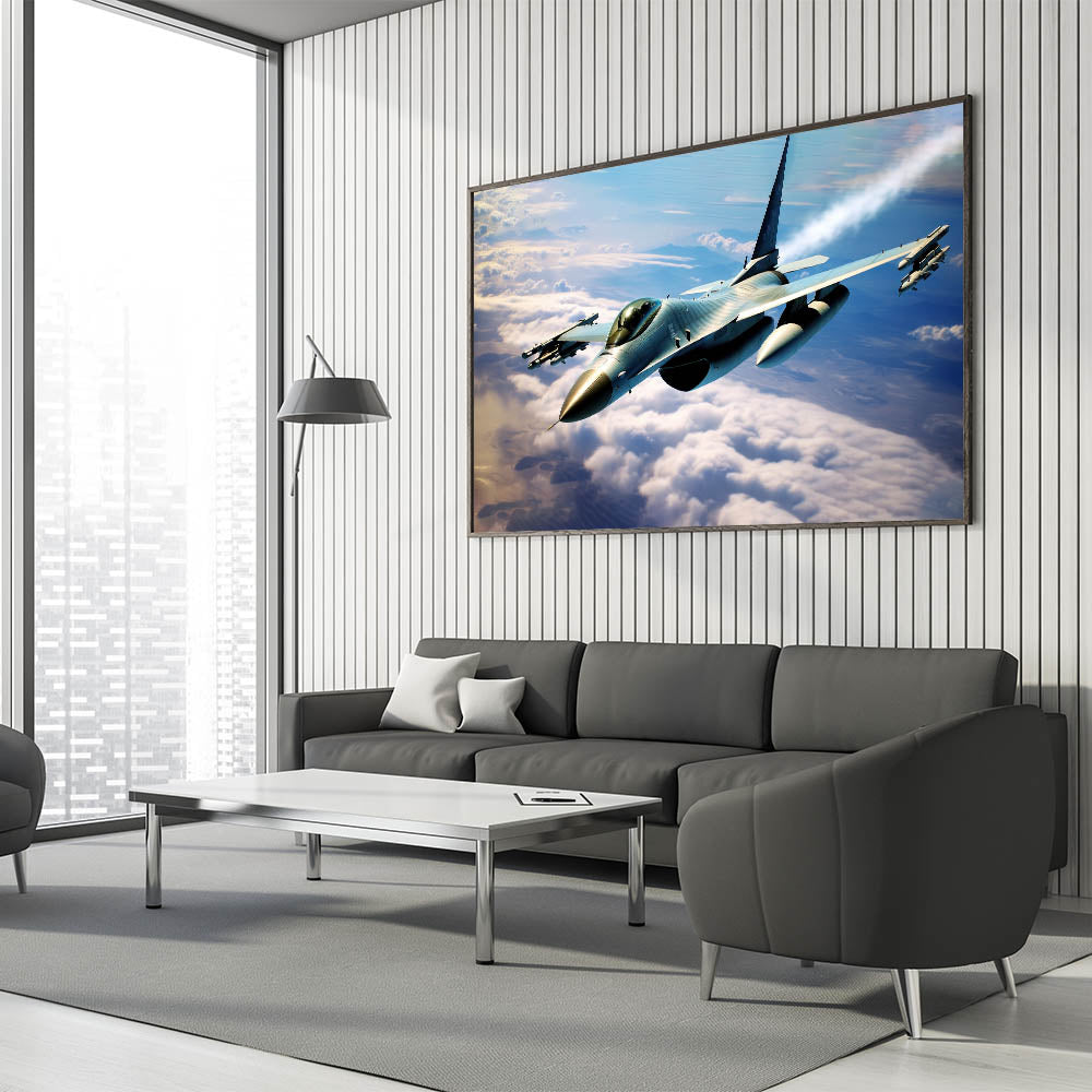 This artwork is perfect for anyone who loves the thrill of aviation or the precision of modern aircraft. It also makes a thoughtful gift for pilots, veterans, and aviation professionals. Elevate your decor with this dynamic piece and let your love for aviation take flight.