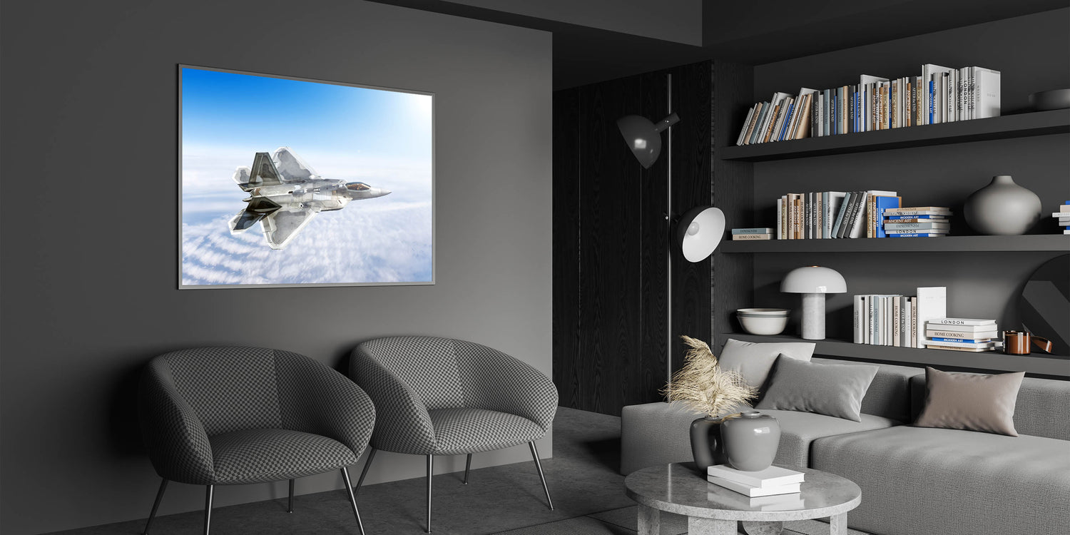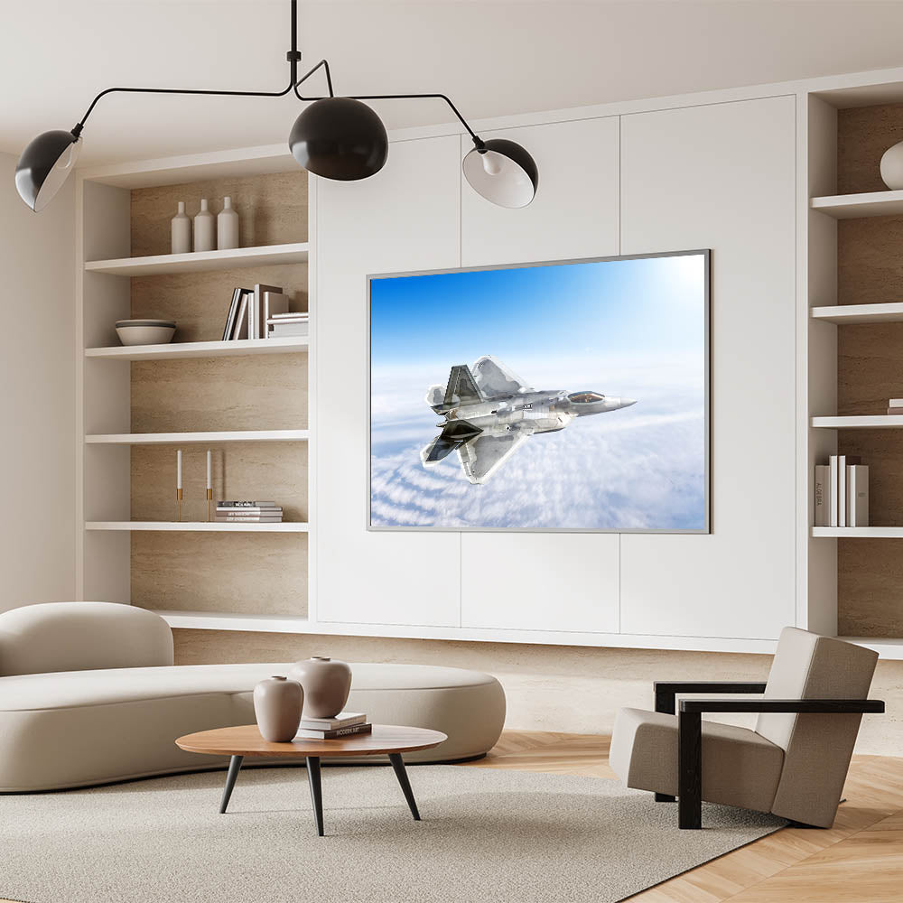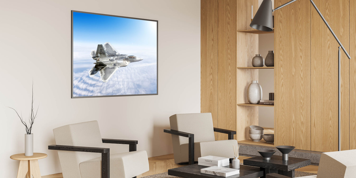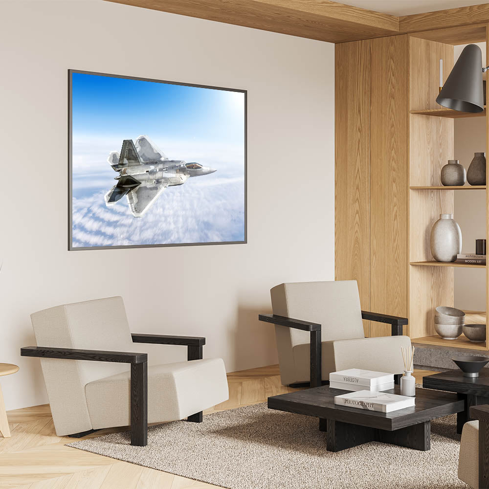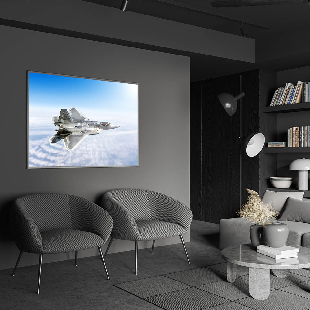 • High-definition printing that preserves the intricate details of the jet and the sky.