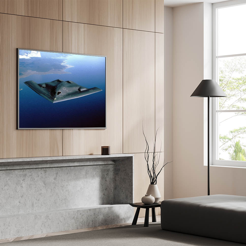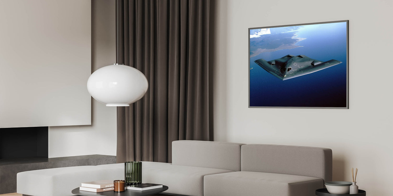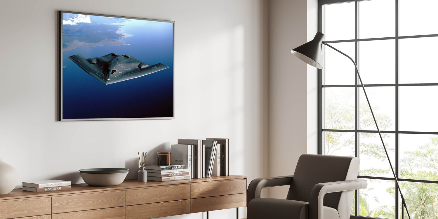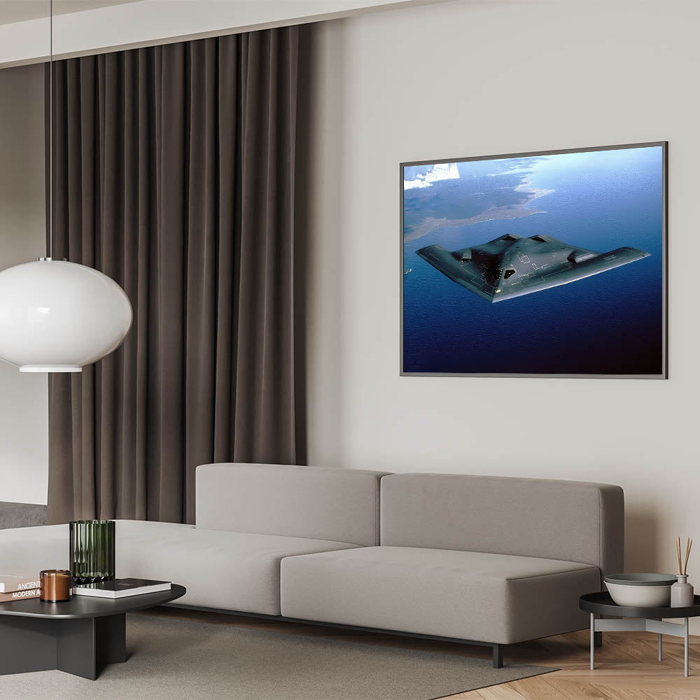 - High-definition printing that captures the sharp details of the stealth bomber and the vastness of the ocean.