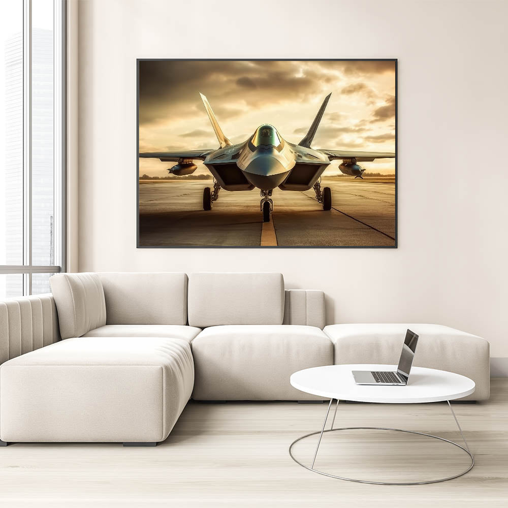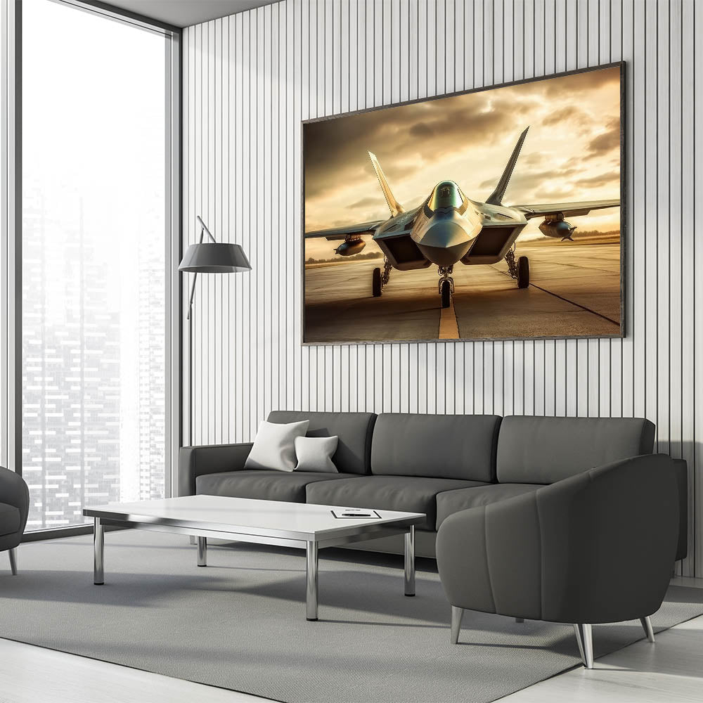 Stealth Jet on Runway at Sunset - Bold Aviation Wall Art Decor
