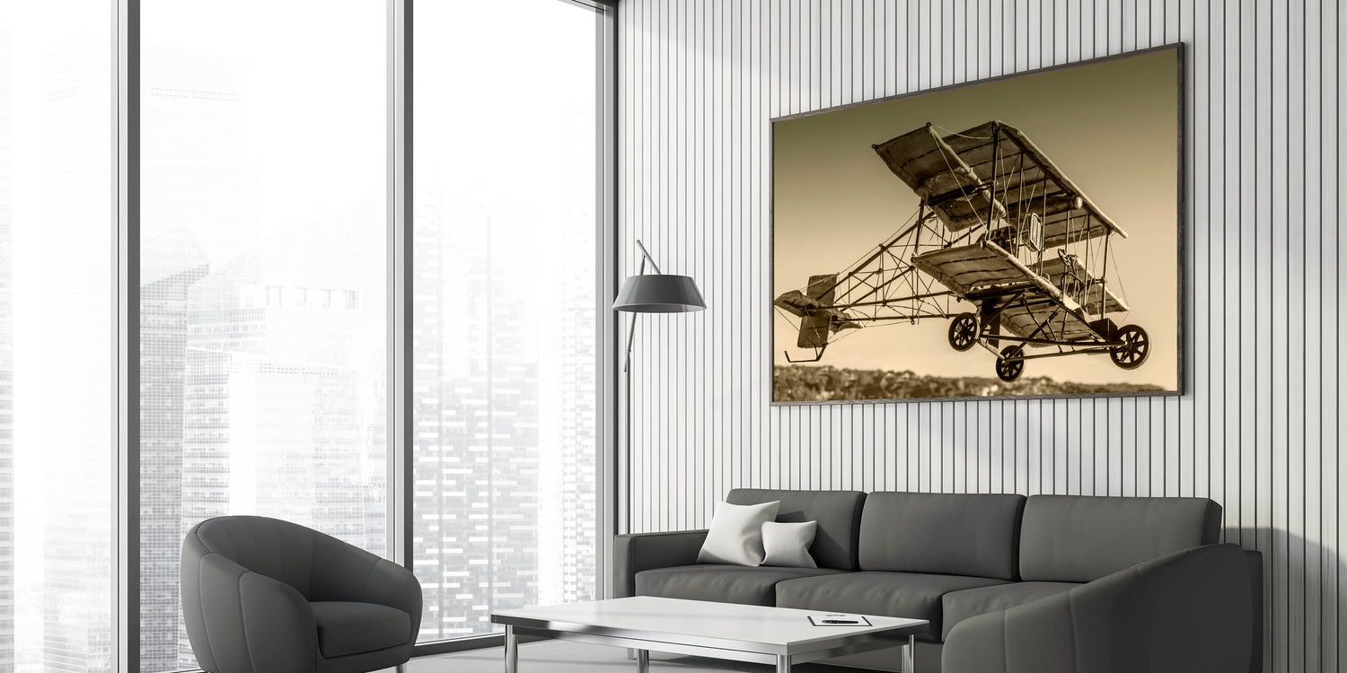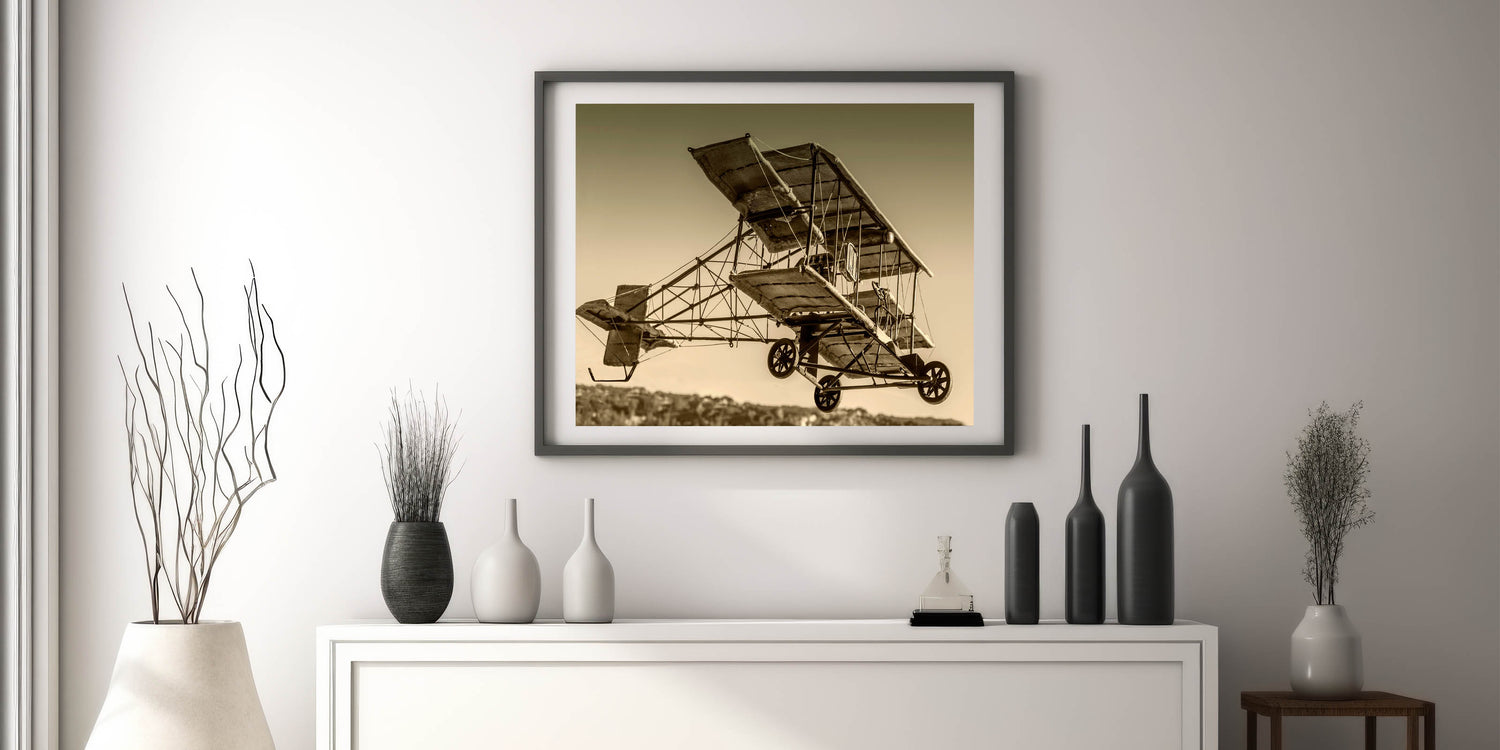 - Timeless Design: The sepia tones and intricate details of the early biplane create a piece that is both historical and elegant, adding character to any room.