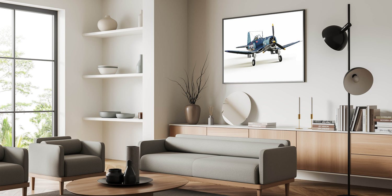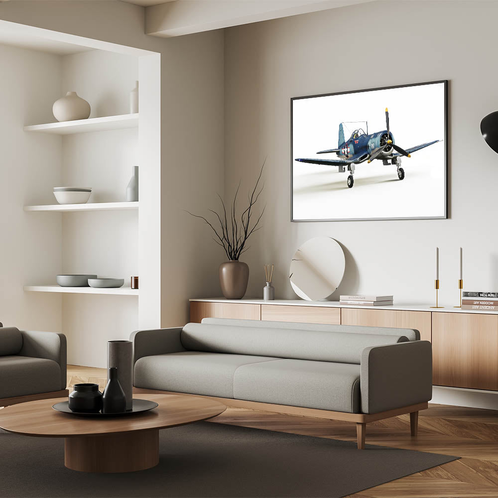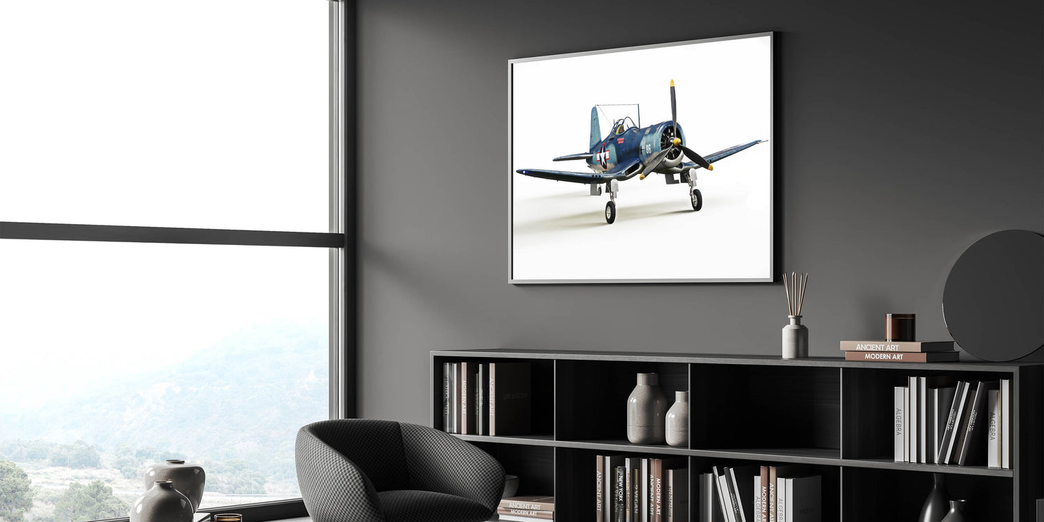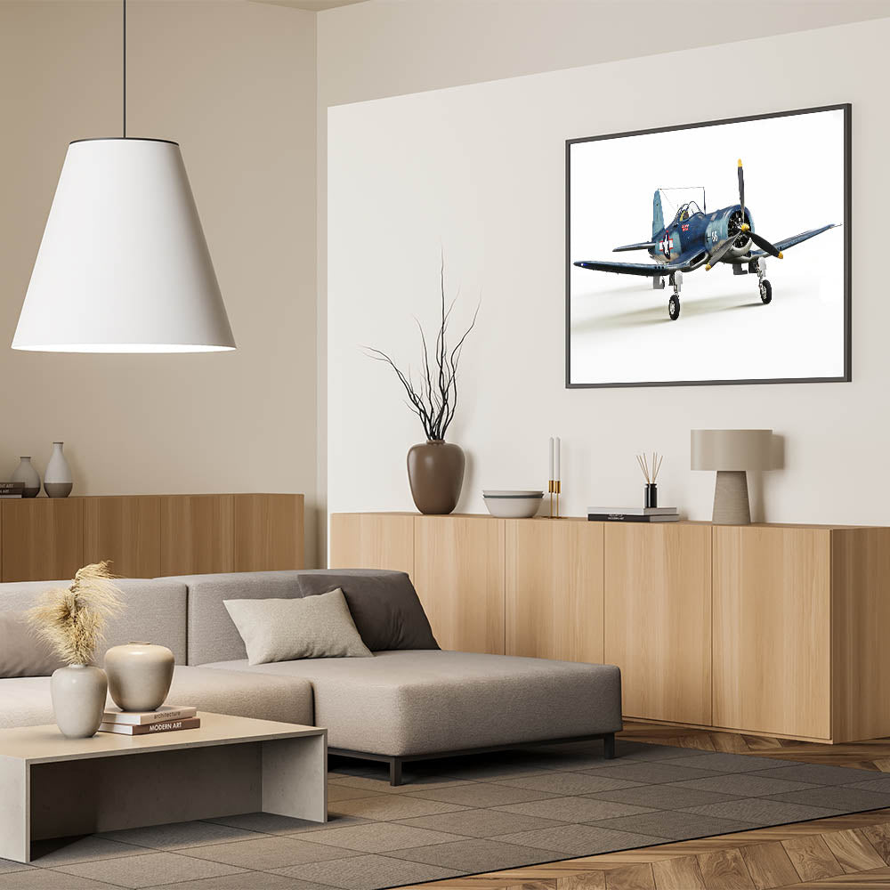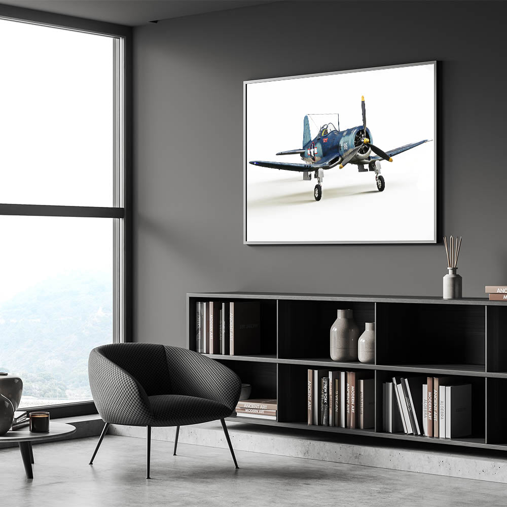 Bring the spirit of WWII aviation into your home with this evocative piece, showcasing the timeless design of a legendary fighter plane.