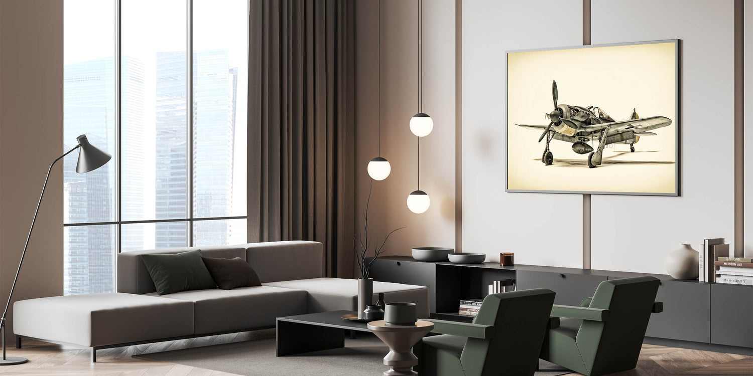 - Detailed Design: The intricate depiction of the WWII fighter plane, combined with the sepia tones, creates a striking piece that evokes a sense of history and nostalgia.
