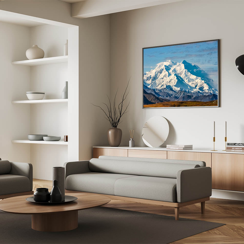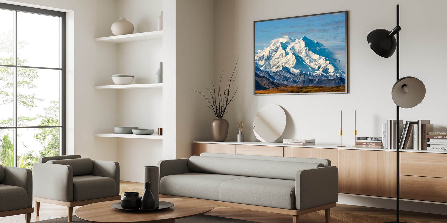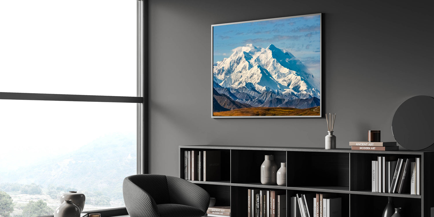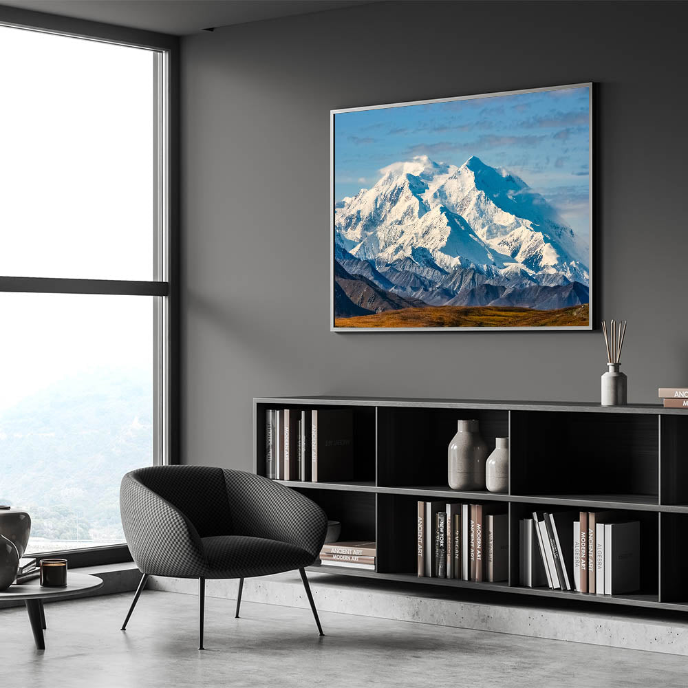 Whether you're a fan of nature photography or looking to bring a touch of Alaska’s wilderness into your home, this Denali photography print will leave a lasting impression. Its vibrant colors and stunning depiction of Mount Denali make it the perfect addition to any home or office.