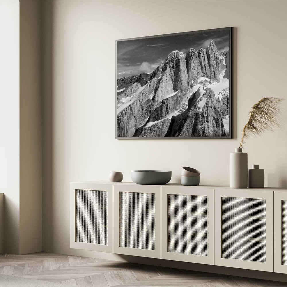 - Monochrome Masterpiece: The black-and-white composition adds a classic, dramatic touch to any decor, highlighting the wilderness of Denali.